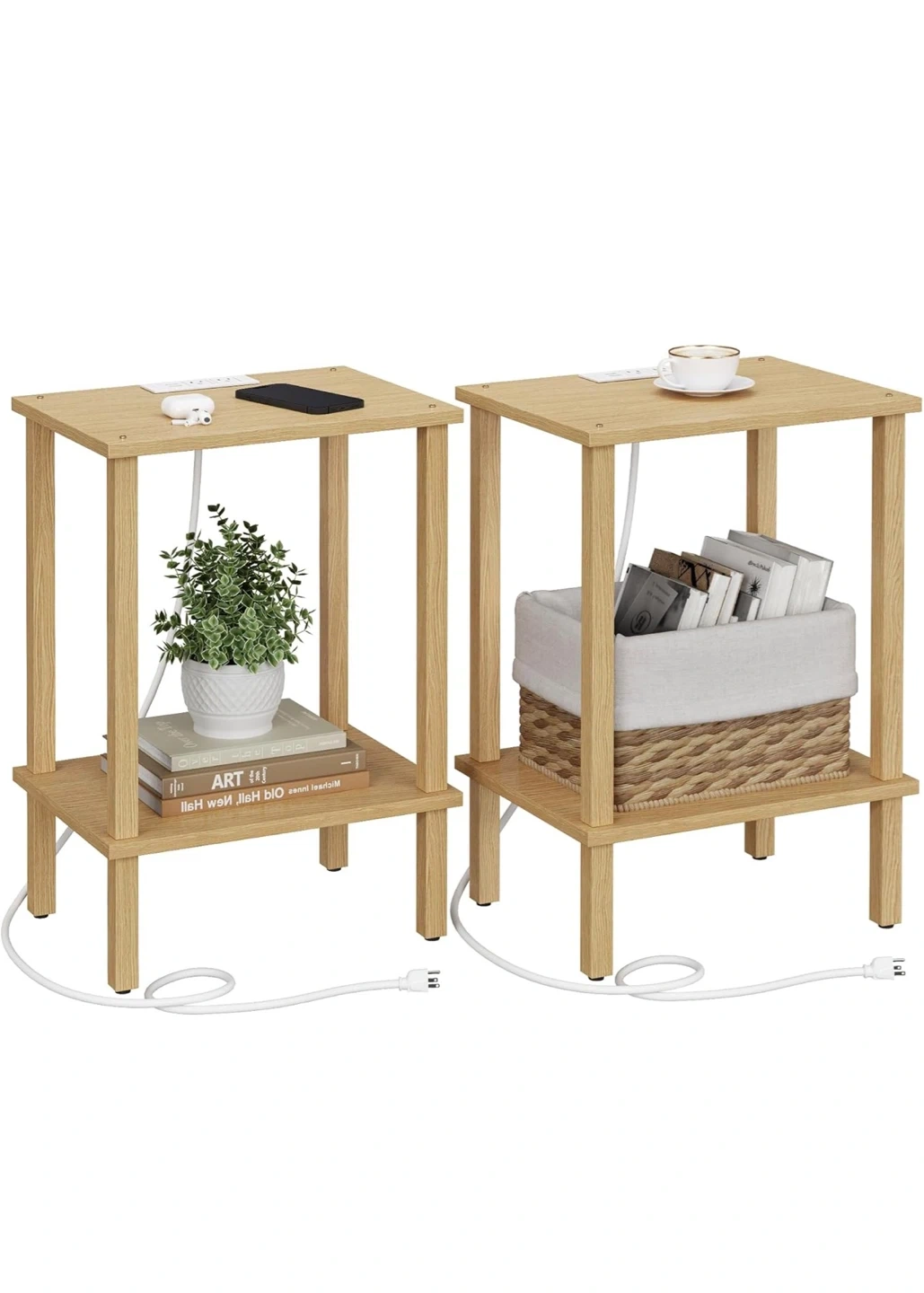 Set of 2 Wooden End Tables with Built-in Outlets & USB Ports