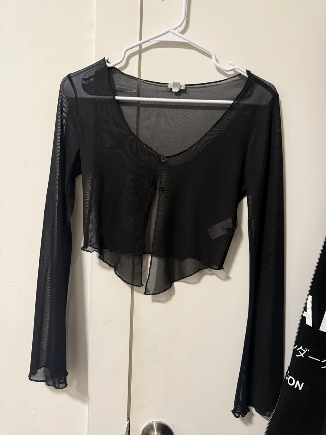 Selling a cute black mesh long sleeve top from Garage! It's in great condition and is a size XS. Perfect for layering or wearing on its own! Only wear it once.