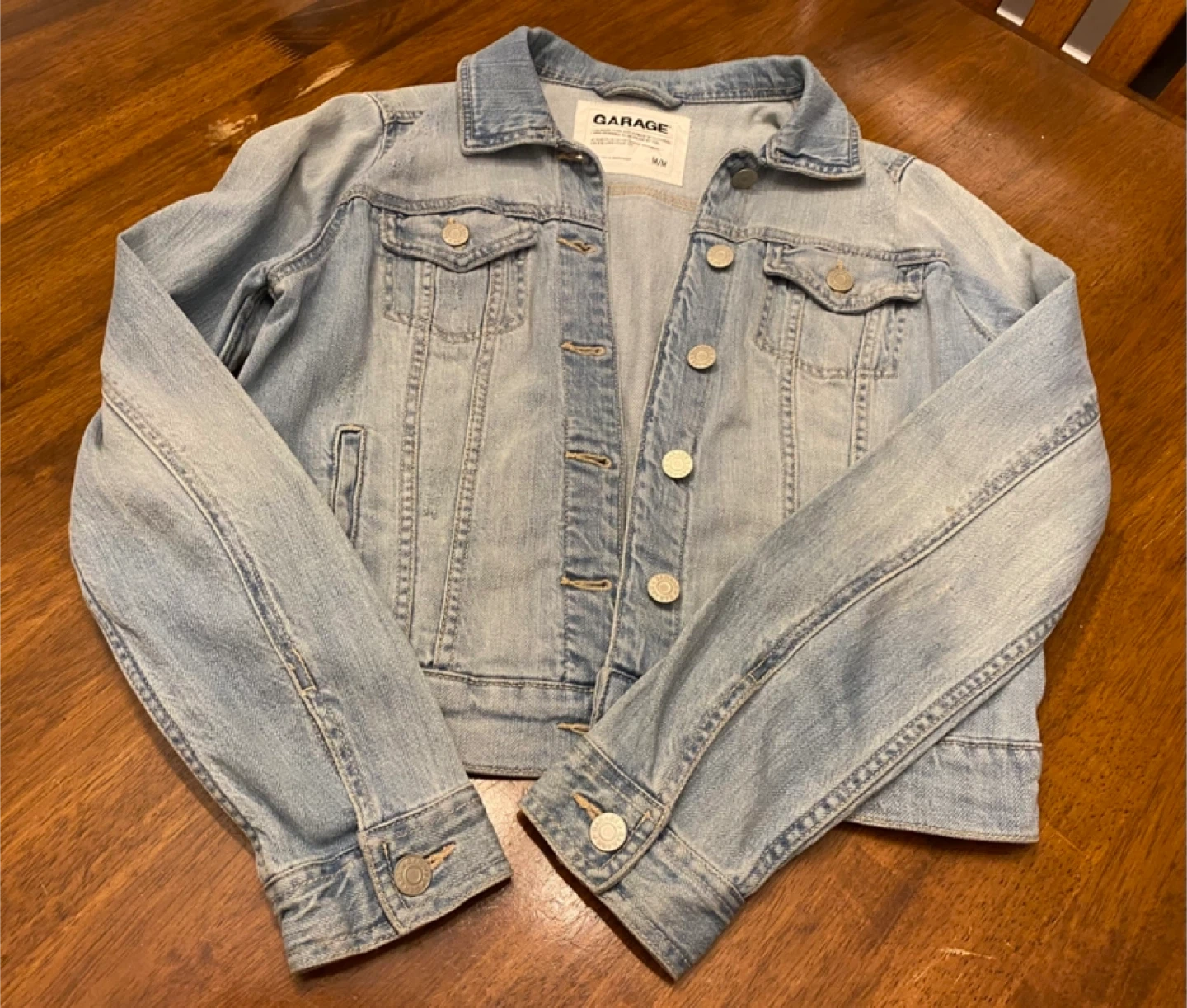 A cute denim jacket from Garage! It's a size medium and in great condition. Perfect for layering or wearing on its own on a cool day
