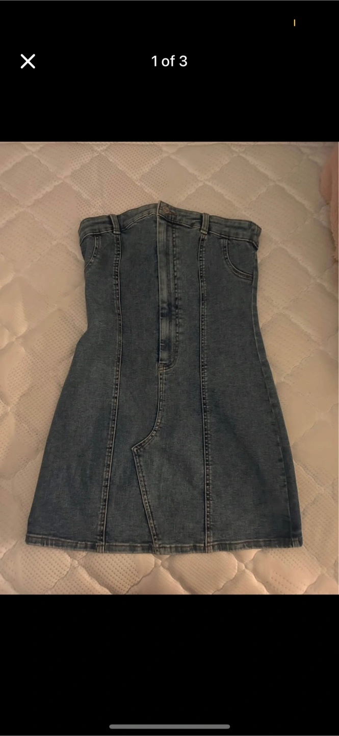 Selling a cute strapless mini dress from Garage Denim! It's a size small and made of denim. It's in great condition and ready for a new home