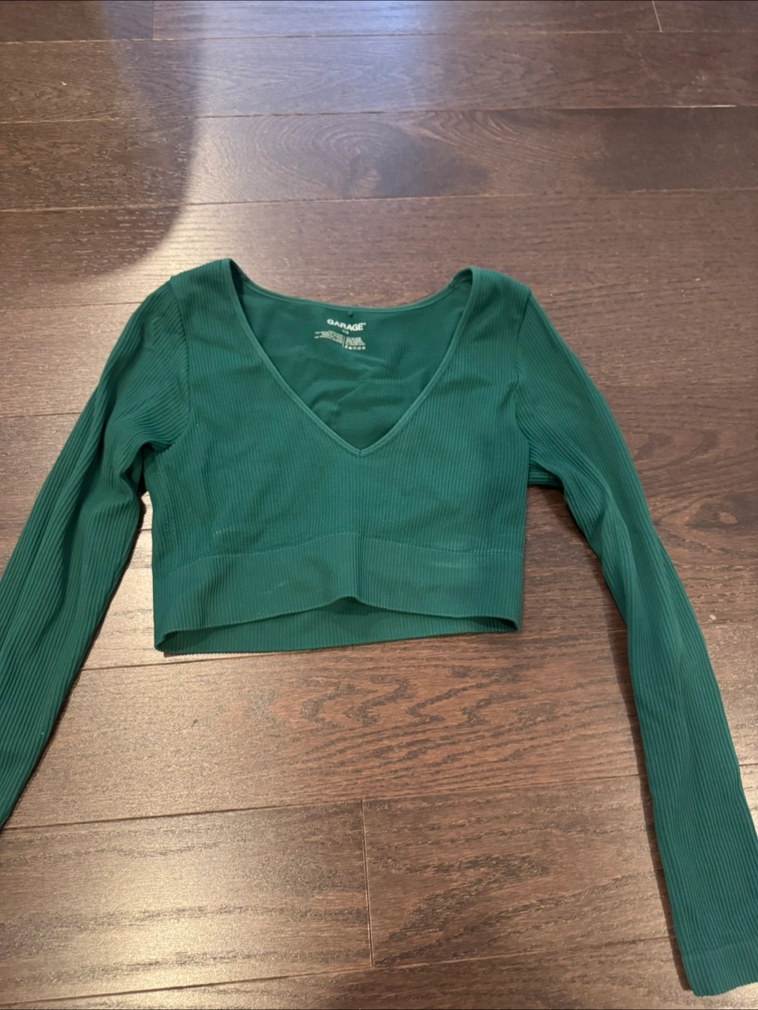 Green ribbed long sleeve crop top. V-neck. Size small. Soft material. Excellent condition.