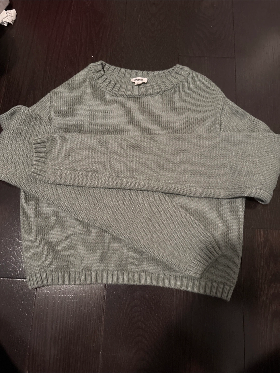Cozy knit sweater from Garage in a lovely sage green colour. It's in great condition and perfect for layering on those chilly days!