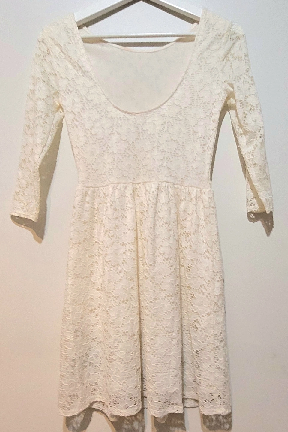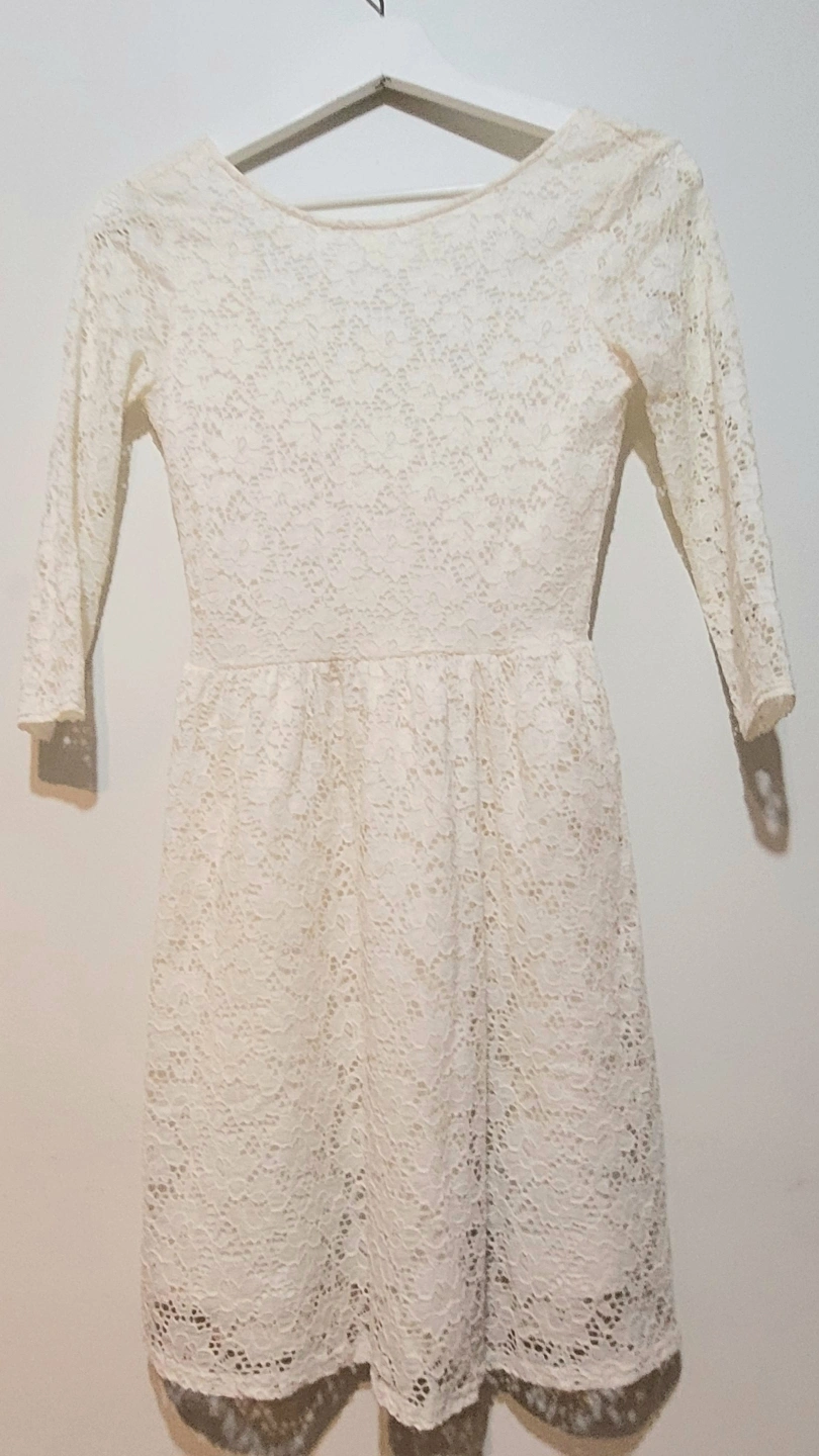 60Adorable white lace dress with three-quarter sleeves. Fit and flare style. ♡No Holds ♡First Come First Serve ♡Serious Buyers Only Please.
