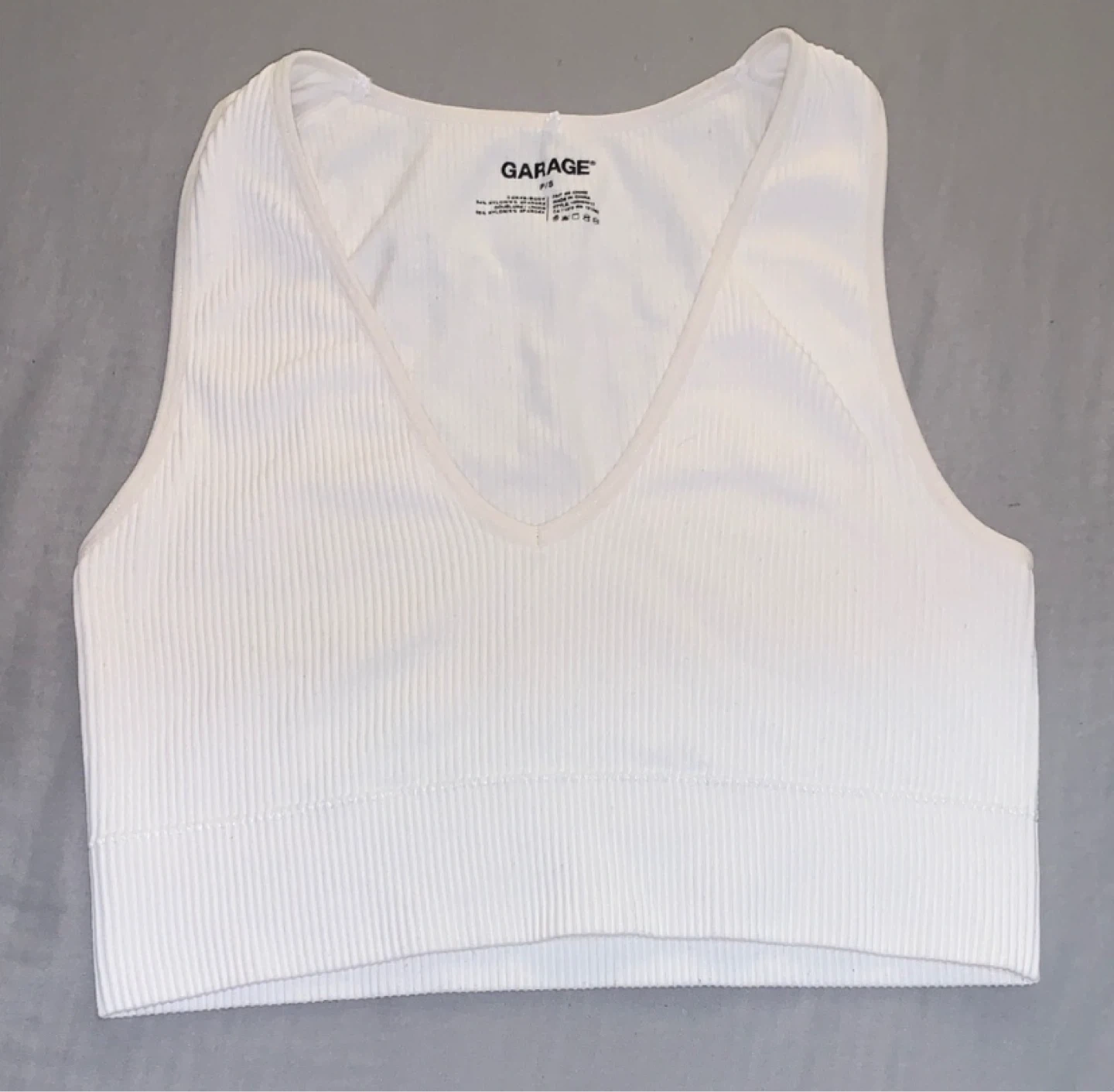 10Selling a super cute white ribbed tank top from Garage! It's a size P/S Great condition, and cleaning out my closet so check out my other listings!
