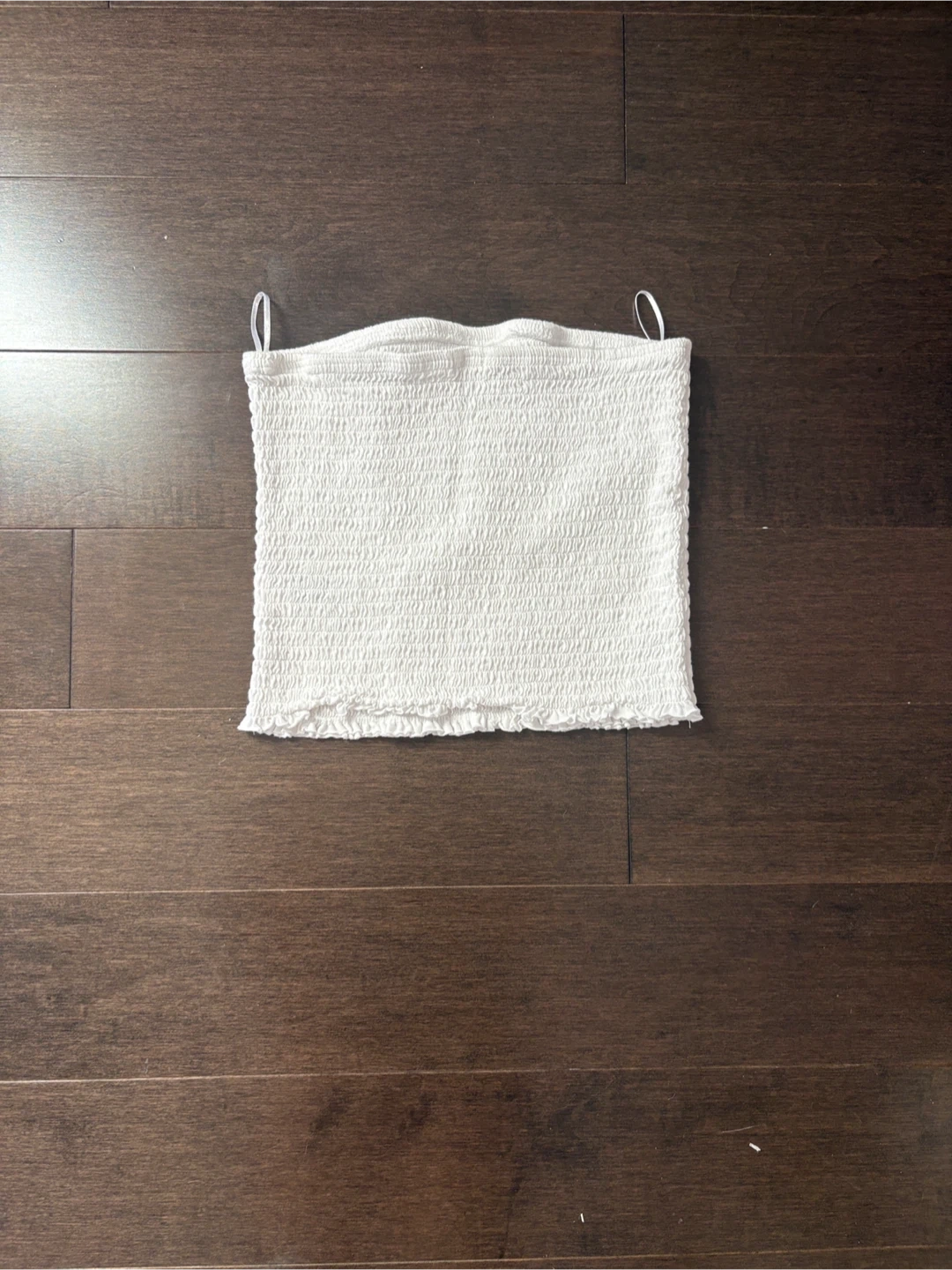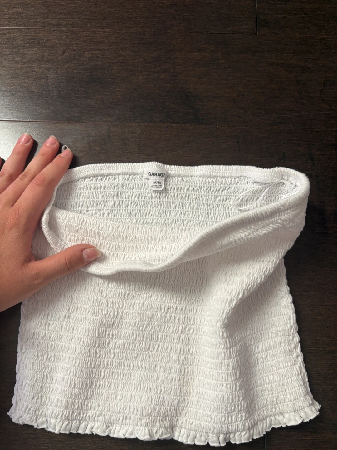 Selling a cute white smocked tube top from Garage! It's in great condition and a size M/M. Perfect for summer!