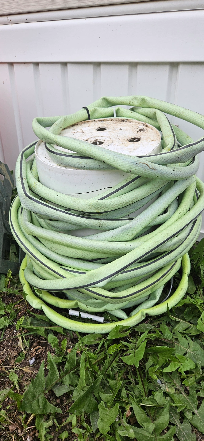 Selling a used 100 ft. garden hose. It's a light green colour with a black stripe. its 5 yrs old. It shows some signs of wear from weather but it's still functional for watering your garden!