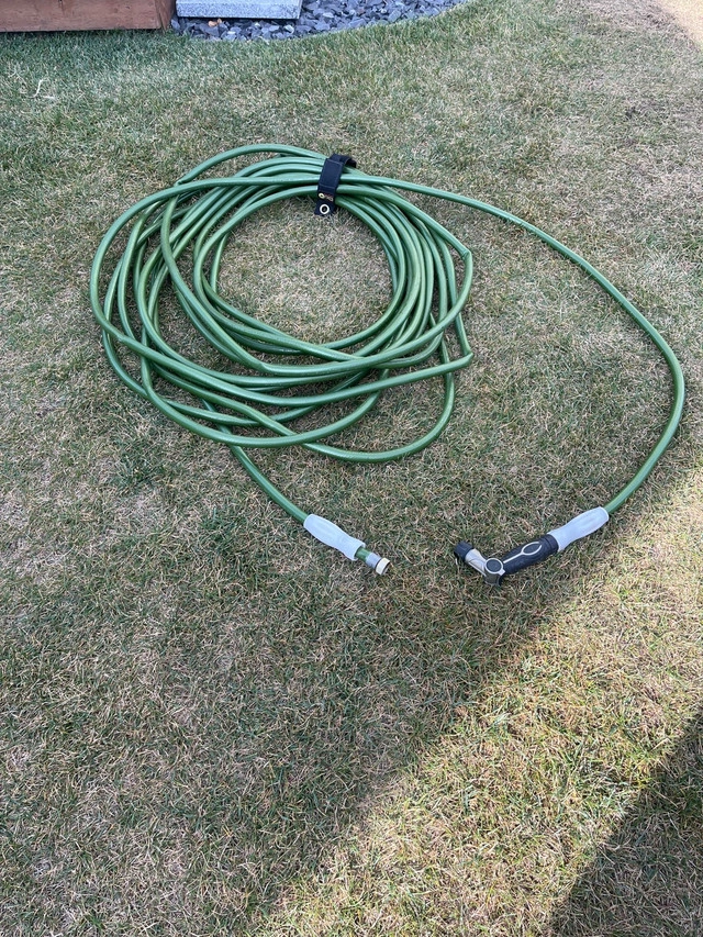 12Keep your garden watered with this versatile green garden hose. This item is in used condition, but works as expected. Watering your garden doesn't have to be a chore; in fact, it can be a fun and relaxing way to spend an afternoon! If the ad is still up, yes, it's available! Cash Only