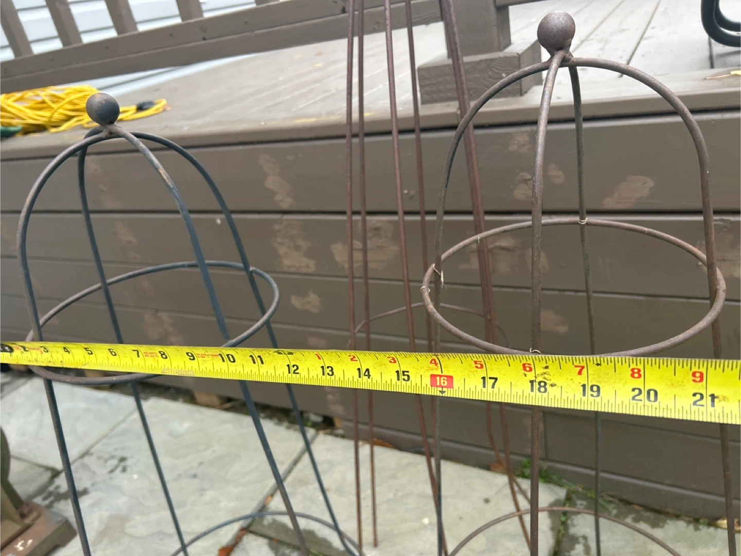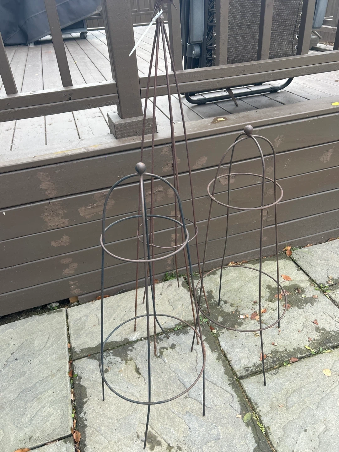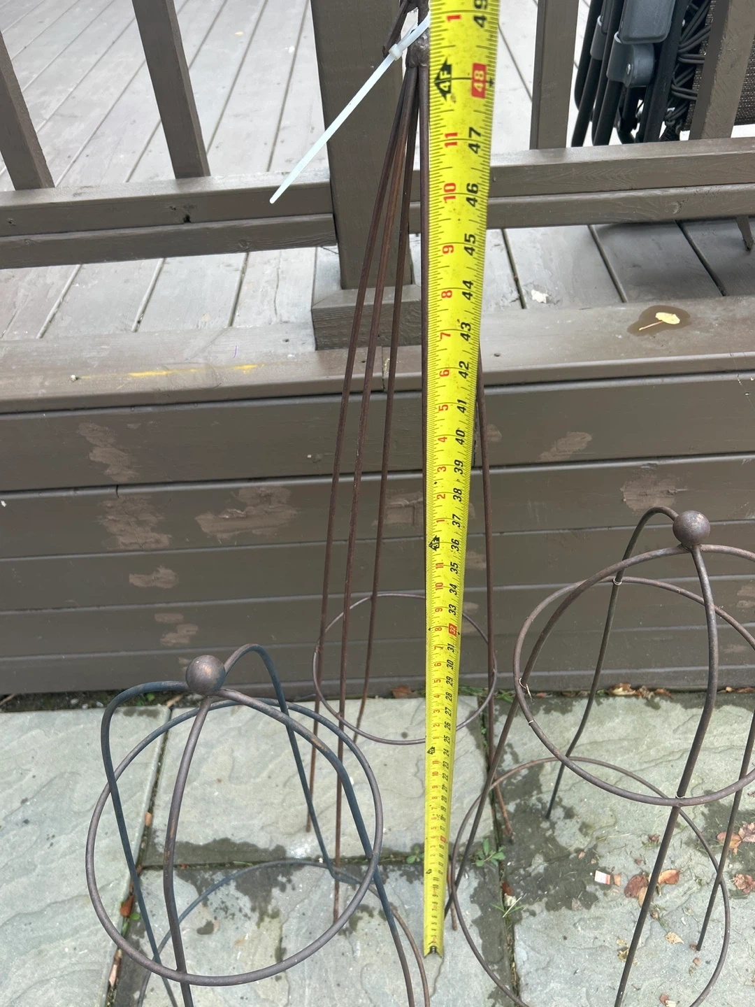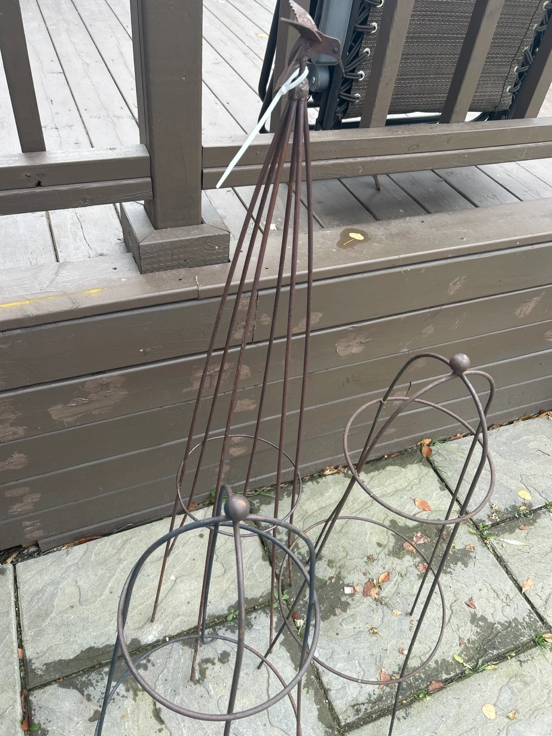 111Selling a set of garden supports, including an obelisk and tomato cages. The obelisk stands approximately 48 inches tall. They're perfect for supporting climbing plants and tomatoes in your garden! 3 In total must take all Bottom pegs need straightening