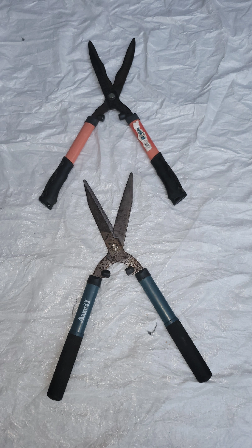 48" level-$20 Pock axe-$20, Shovel-$10 Sledgammers big-$20 Big scissors hedge trimmer-$5