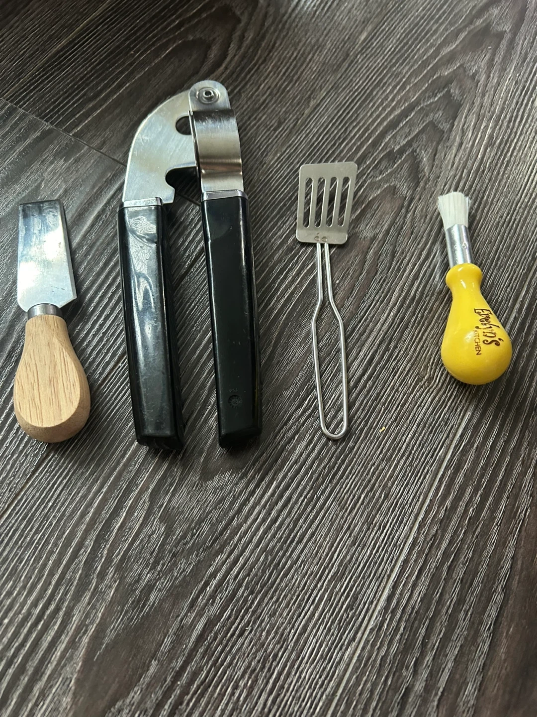 1628inch garlic press , 5inch cheese cutter, tiny spatula and tiny brush. These are just small items I don’t need or use. They work great. You have to take everything I will not sell separately. Sorry no refunds. Cash or e-transfer only. Payment to be made at pickup. Pick up place is the A&W on 200st Langley