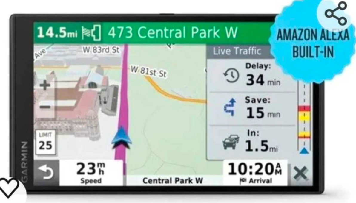 Selling a Garmin GPS navigation system with Amazon Alexa built-in! It displays live traffic updates, including delay times and estimated arrival. It also shows speed and distance to your destination. wifi as well