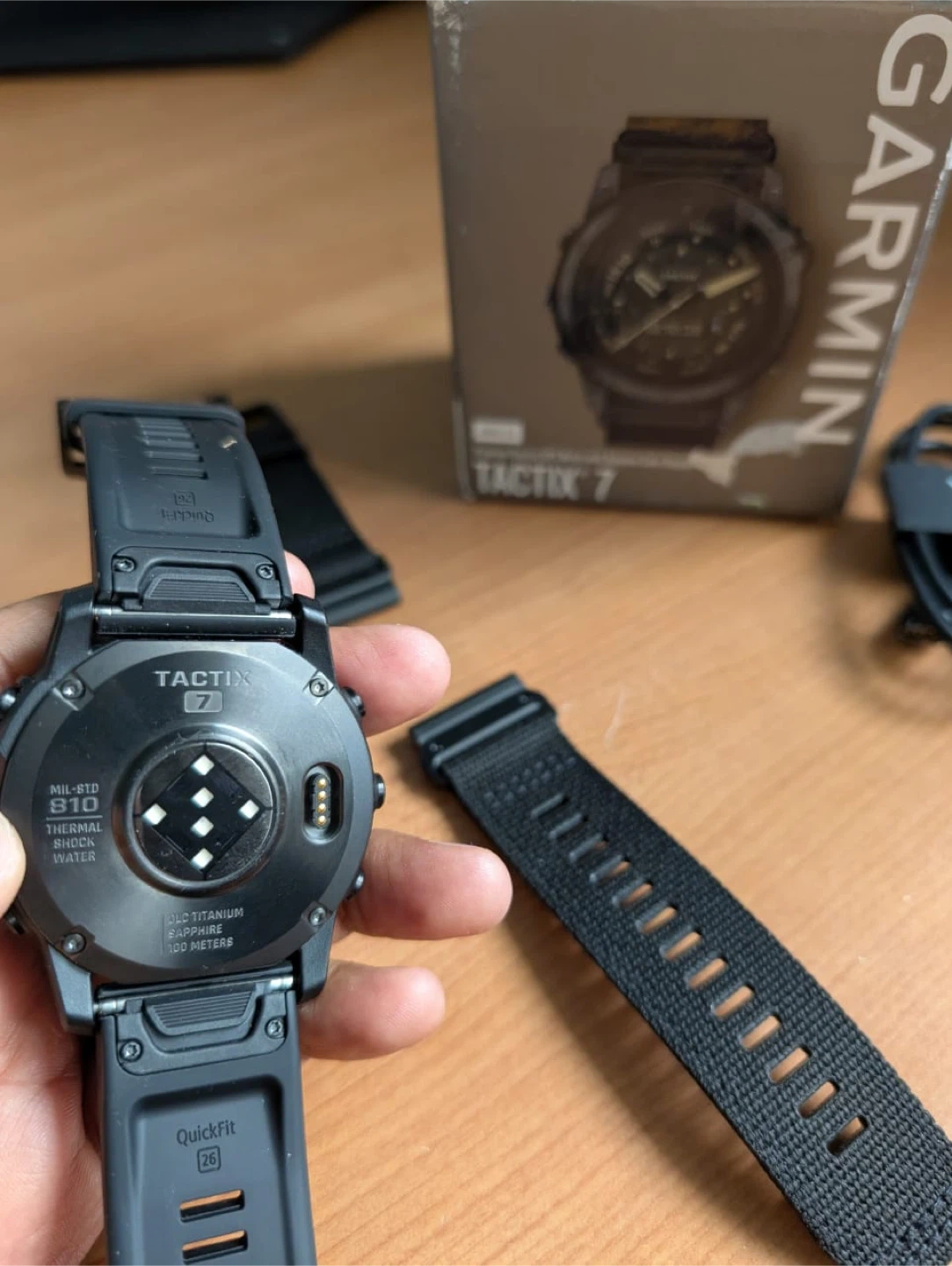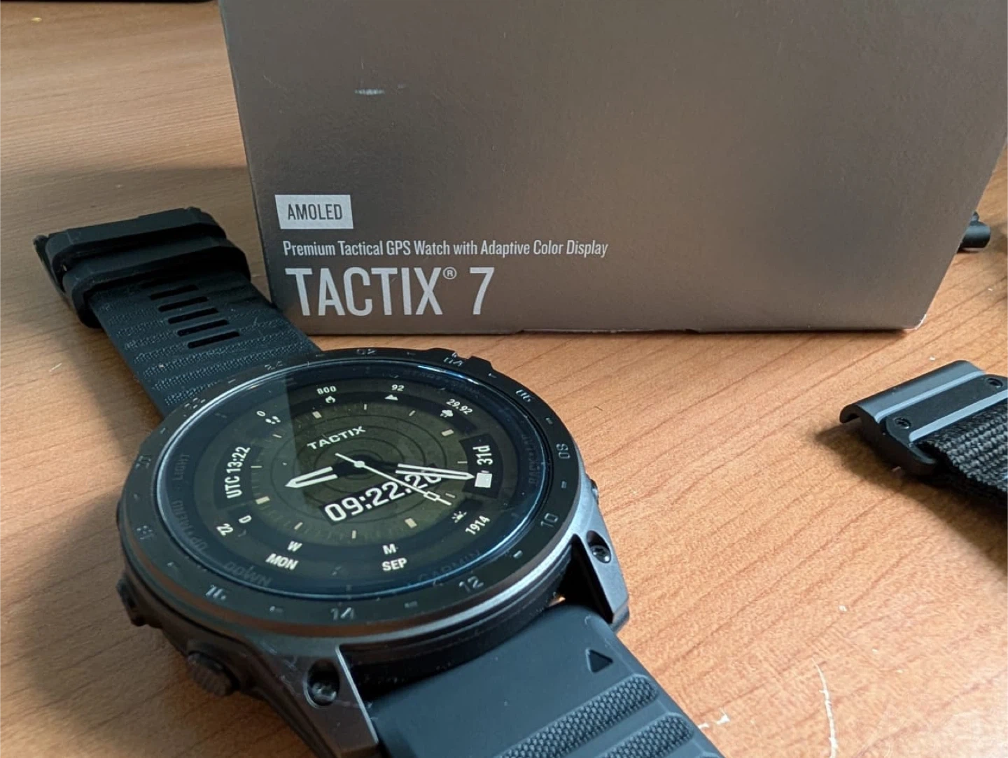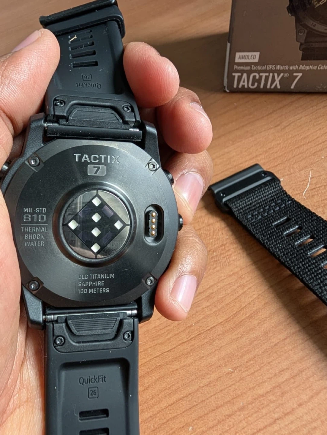 10Selling a brand new like Garmin Tactix 7 AMOLED Premium Tactical GPS Watch with Adaptive Color Display. It comes with the box and an extra watch band. Features include: - AMOLED display - Premium Tactical GPS Watch - Adaptive Color Display - DLC Titanium - Sapphire lens - 100 Meters water resistance