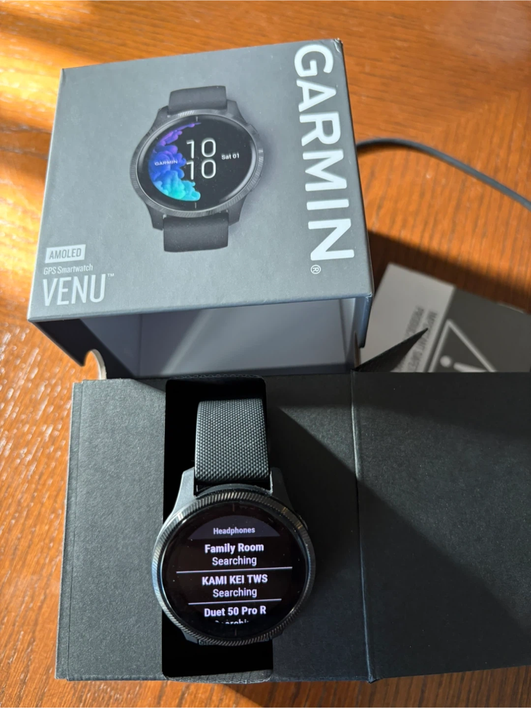 Selling a Garmin Venu GPS Smartwatch in excellent condition! It comes with the box and all original components. This AMOLED smartwatch is perfect for tracking your fitness activities and staying connected. The box is included!