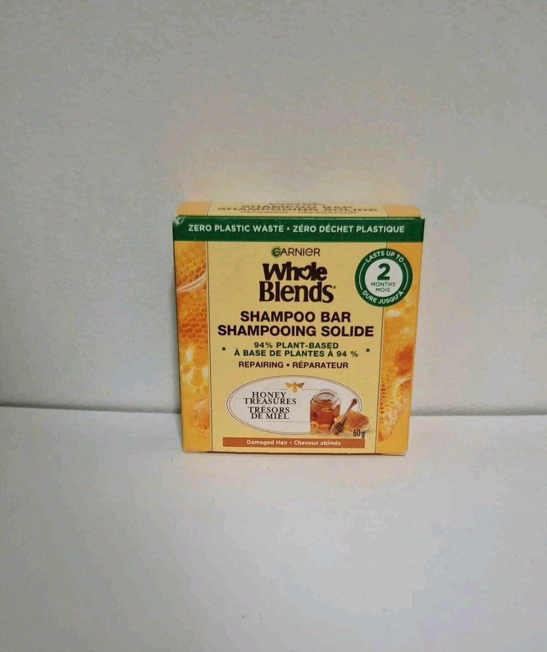 Selling a brand new Garnier Whole Blends Honey Treasures Shampoo Bar! This shampoo bar is 94% plant-based and designed to repair damaged hair. It's also zero plastic waste, which is great for the environment! It can last up to 2 months.