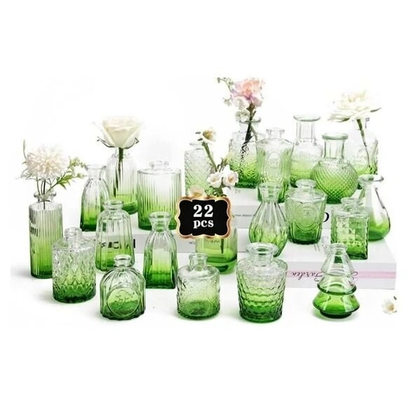 Bud Vases in Bulk 22 Green Glass Small Vases Flower