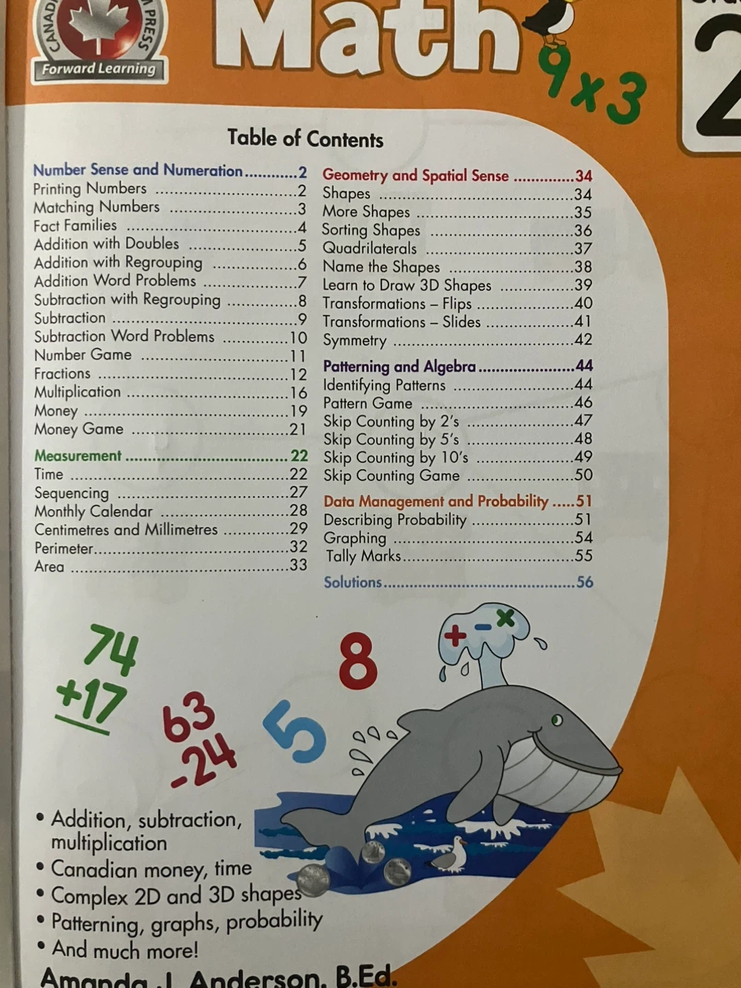 This is a set of three Grade 2 "Learning Essentials" books covering Math, Reading, and Writing. Written by teachers for the Canadian classroom. The books include a variety of exercises and games. Subjects covered are addition, subtraction, multiplication, money, time, geometry, patterning, and probability.