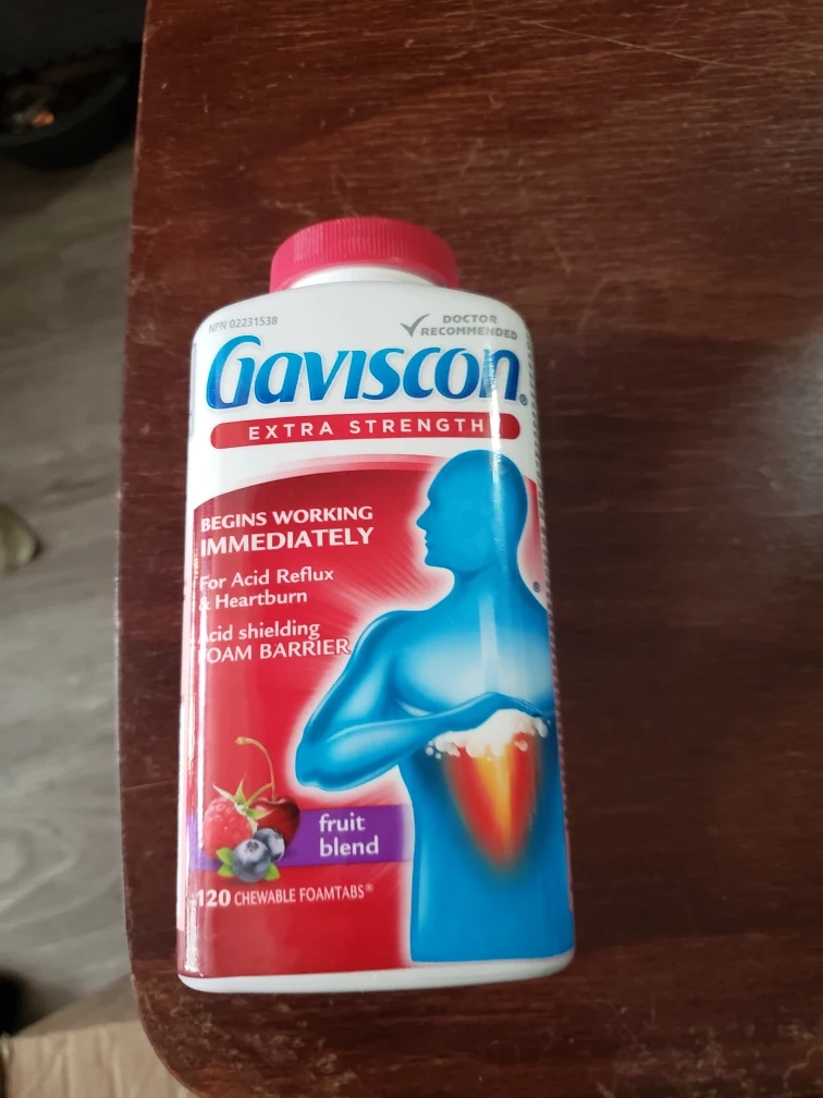 Selling a bottle of Gaviscon Extra Strength chewable tablets in fruit blend flavour. It helps with acid reflux and heartburn. There are 120 chewable tablets in the bottle. Expiry date is 2027 September