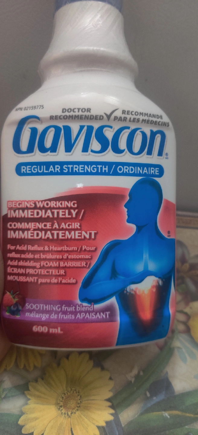 Selling a brand new bottle of Gaviscon Regular Strength liquid, 600mL size! It's a soothing fruit blend that begins working immediately for acid reflux and heartburn. Expiry date is 2027 May.Safety seal is intact - Acid Shielding Foam Barrier - Day and Night-time relief of heartburn, acid reflux, and GERD - Sugar, Lactose & Gluten Free