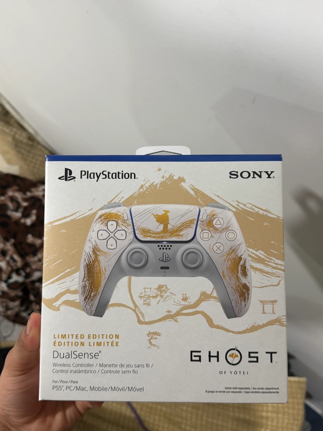 This is the PlayStation DualSense Wireless Controller in the limited edition Ghost of Yotei design. It's compatible with PS5, PC, Mac, and Mobile devices. Enjoy immersive gaming with this unique controller!