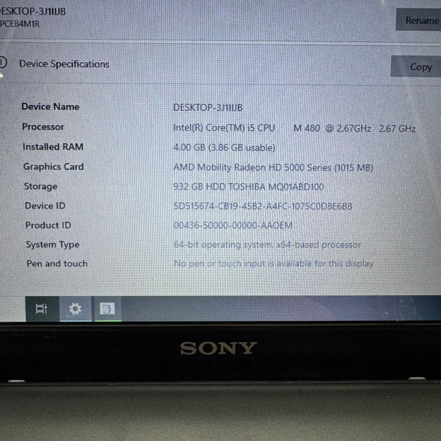 Sony VAIO PCG-71211V Laptop i5-480M 2.67GHz 4GB, 932GB HDD 15.6”