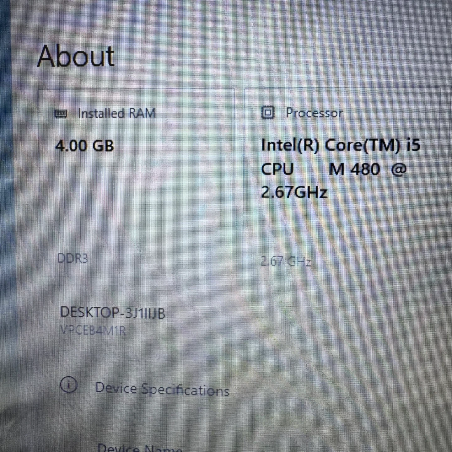 • Processor: Intel Core i5-480M 2.67GHz
