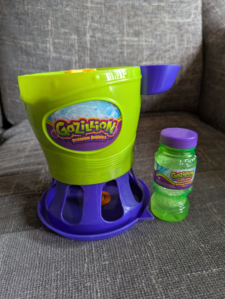Selling a Gazillion Premium Bubble Machine! It comes with a bottle of bubble solution so you can get the bubbles going right away. It's in great condition and ready for some fun! Used once or twice!