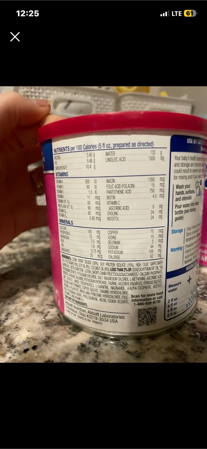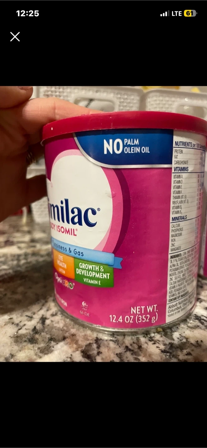 Similac Soy Isomil infant formula. It's designed for fussiness and gas, with OptiGRO for brain nourishing DHA, eye health, and growth and development with Vitamin E. This formula is soy-based and contains iron. Net weight is 12.4 oz (352 g)