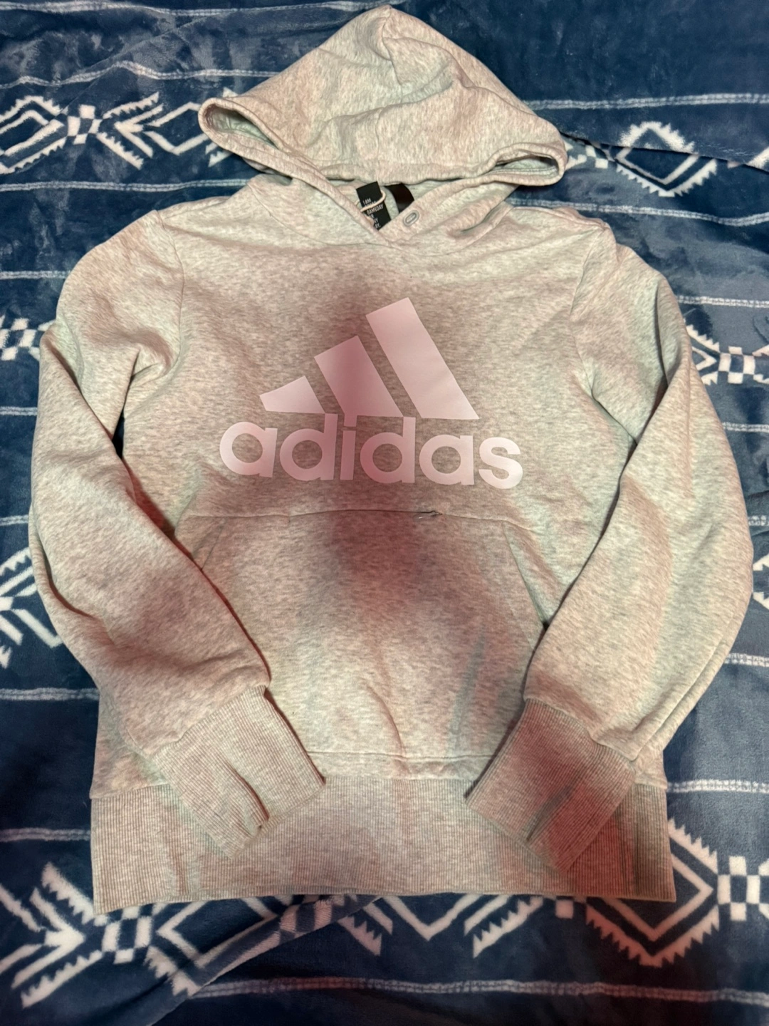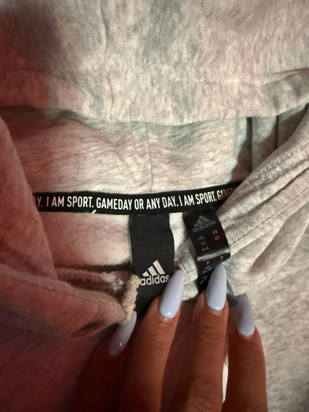 Selling a comfy Adidas hoodie in a light grey colour! It's a size XS and features the classic Adidas logo on the front. Perfect for staying cozy on those cooler days!