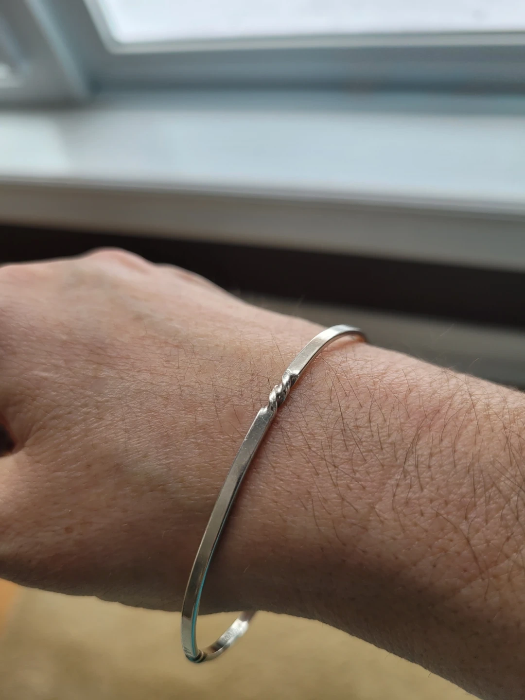 Single .925 Sterling Silver bangle It has 4 twist design throughout bangle. Fits slightly larger hand. Jewelry Box Clearout, please view other items, lots of jewelry.
