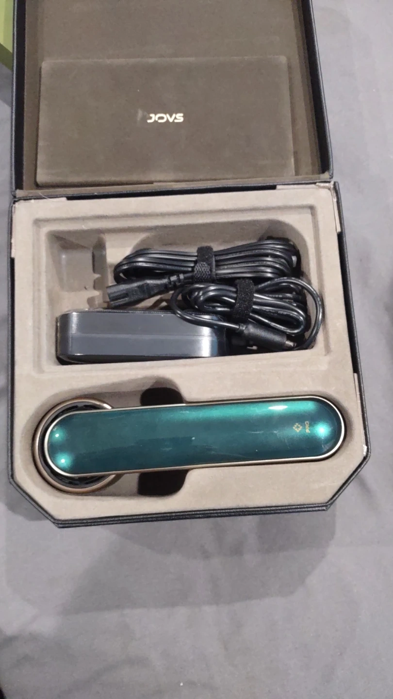 This is the JOVS Skin Photonic Rejuvenation Device. It's designed for skin treatments. Includes a charging cable, power adapter, and original case.