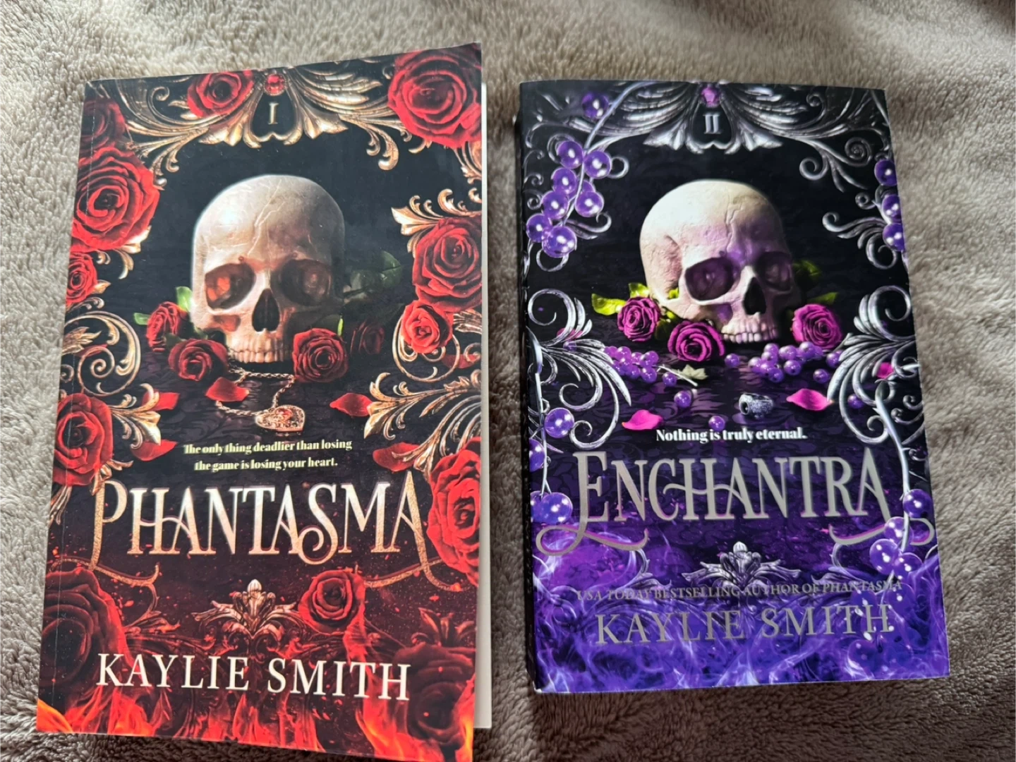 Two fantasy novels, Phantasma and Enchantra, by USA Today bestselling author Kaylie Smith. Phantasma is volume I and Enchantra is volume II in the series. These books are in paperback format.