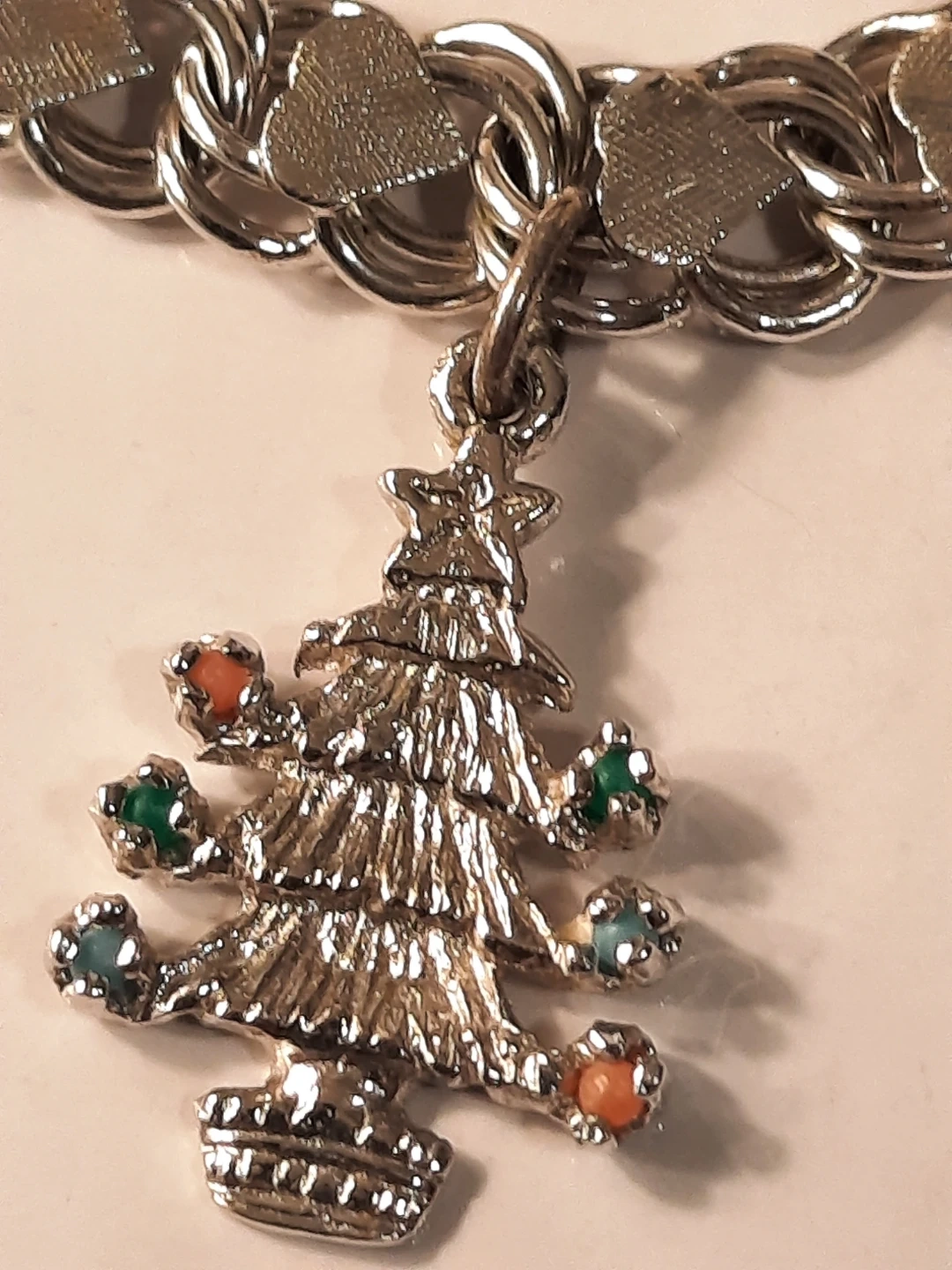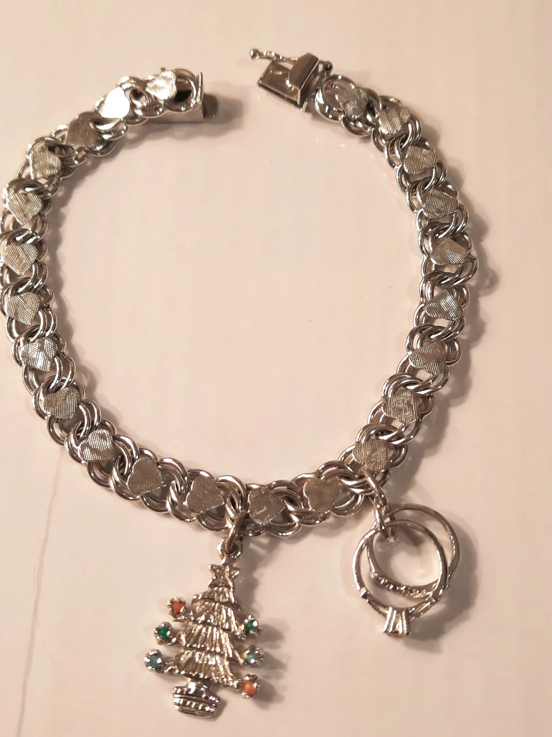 Sterling Silver Charm Bracelet with Christmas Tree & Rings