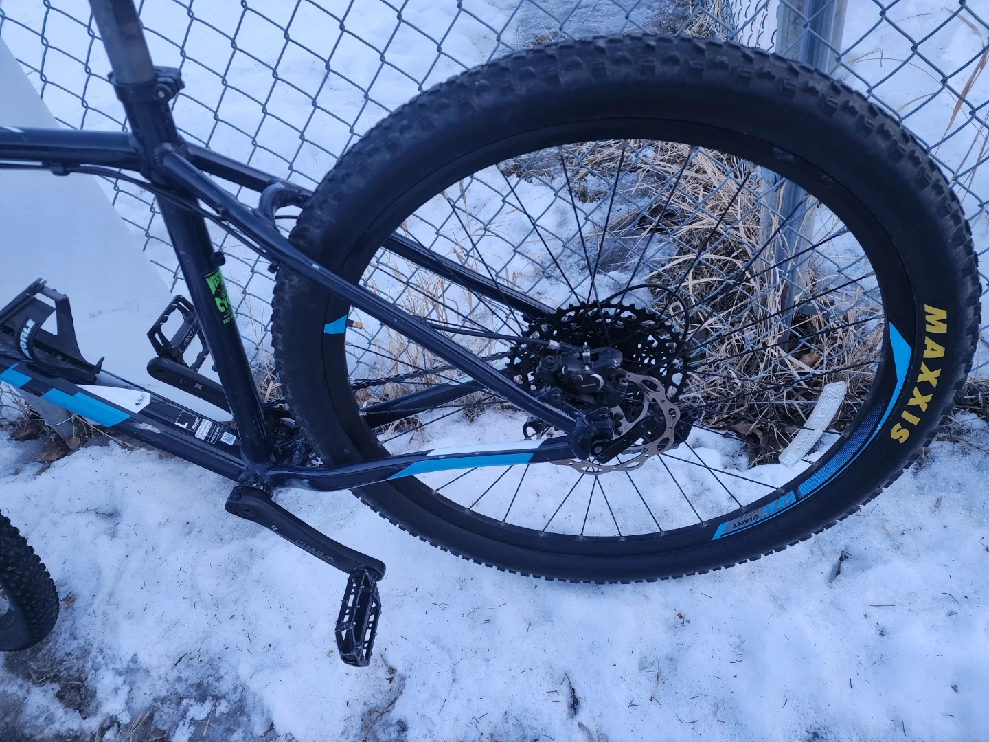 This is a Giant P-27.5 mountain bike with an aluminum frame. It has disc brakes. New brakes caliper and pads and SRAM shifter and rear derailleur. The tires are Maxxis Ardent. Upgrade to 1by11. Lot of life left on drive train. Fully refurbished. Put together by professional bike mechanic