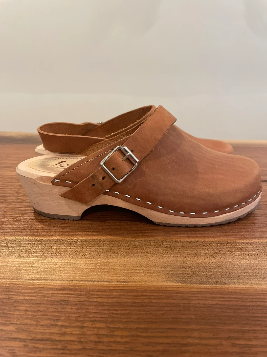 An iconic shape and style that can be worn in the classic fashion (strap over top) or more secure (strap at heel). This is the 70s vibe you’re looking for, bayBEE!