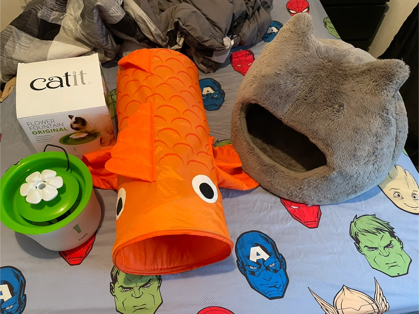 Cat Fountain, Tunnel & Hooded Bed Lot