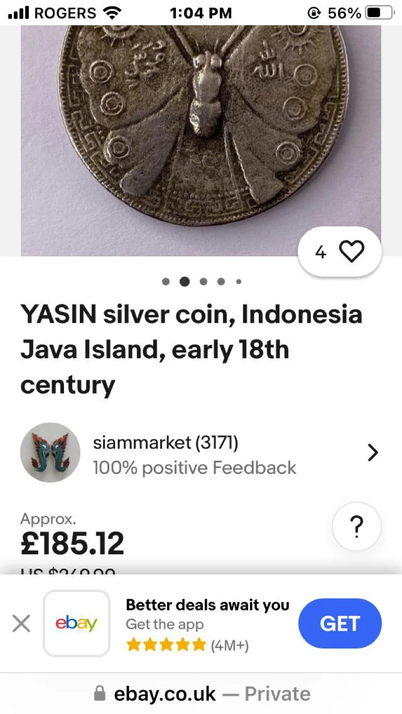 Vintage Yasin Coin with Butterfly and Ship Designs