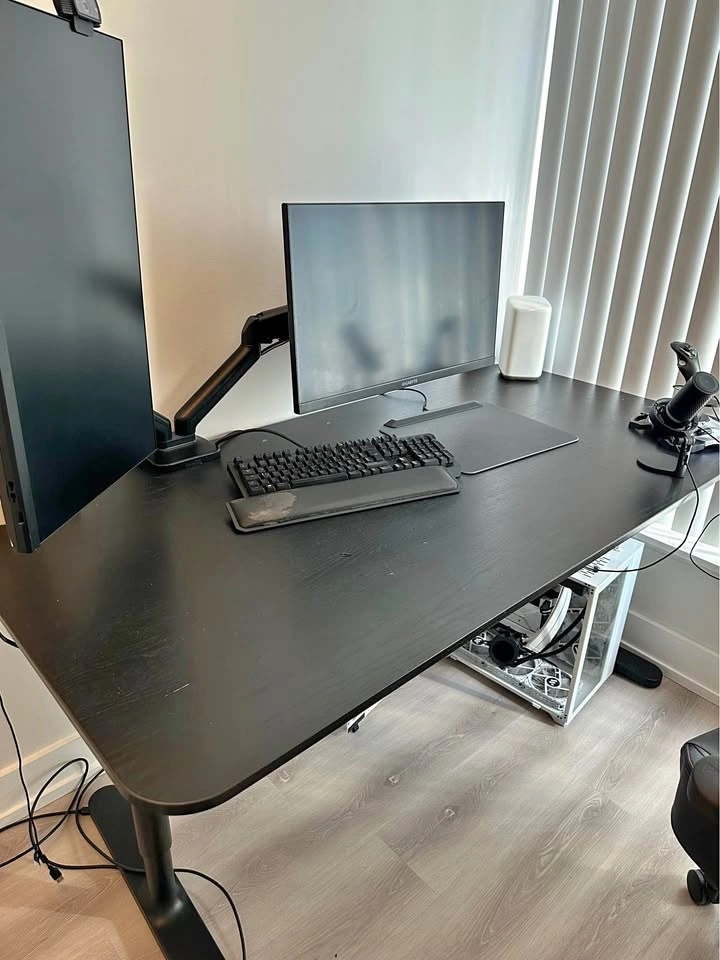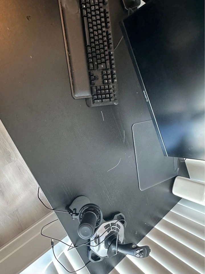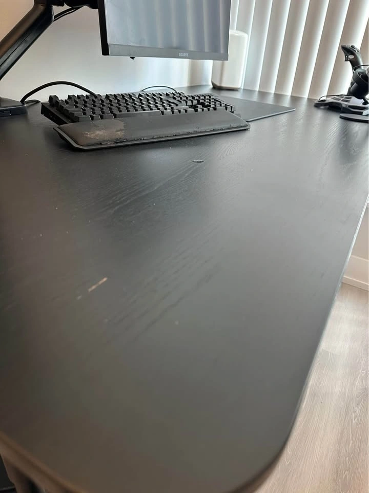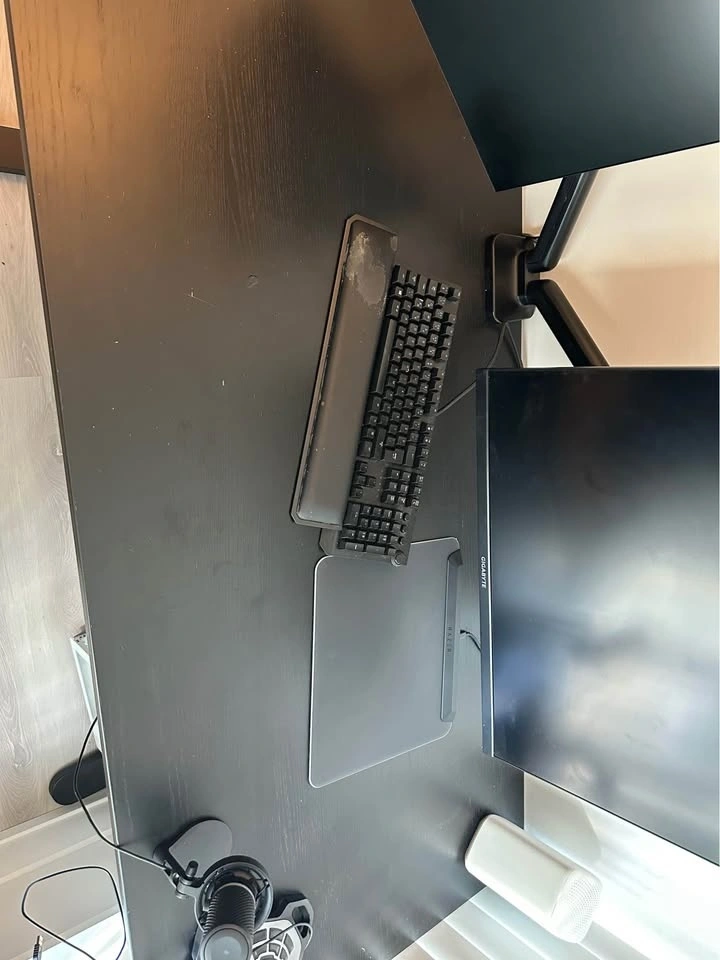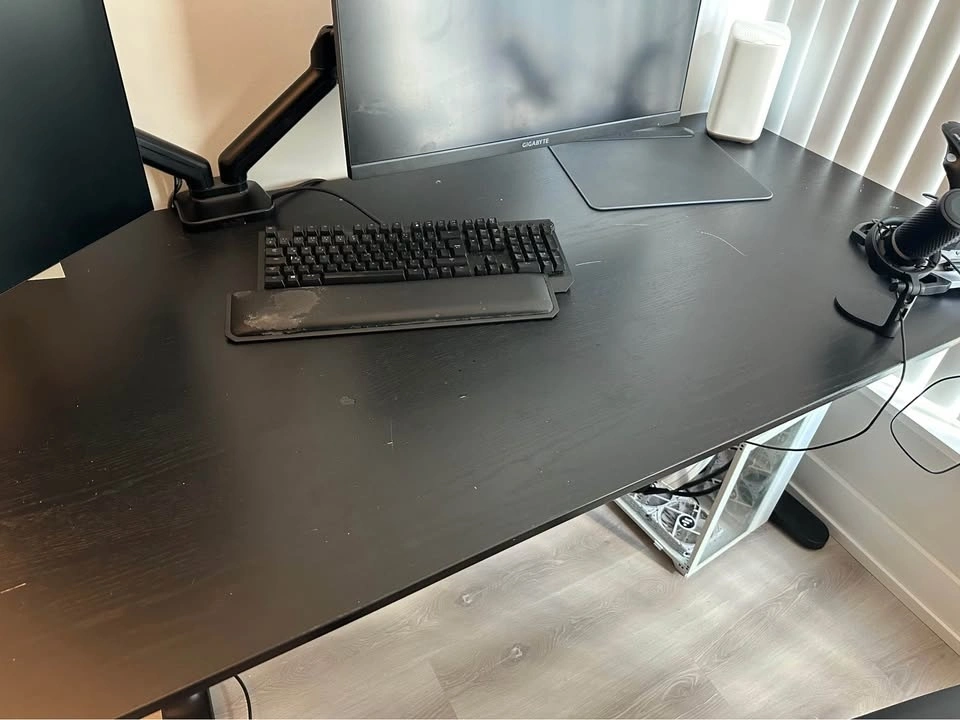 Spacious black desk, great for work or gaming setup. Has visible wear on the top (shown in photos) but very sturdy and fully functional. Selling because I’m moving. Pickup only.