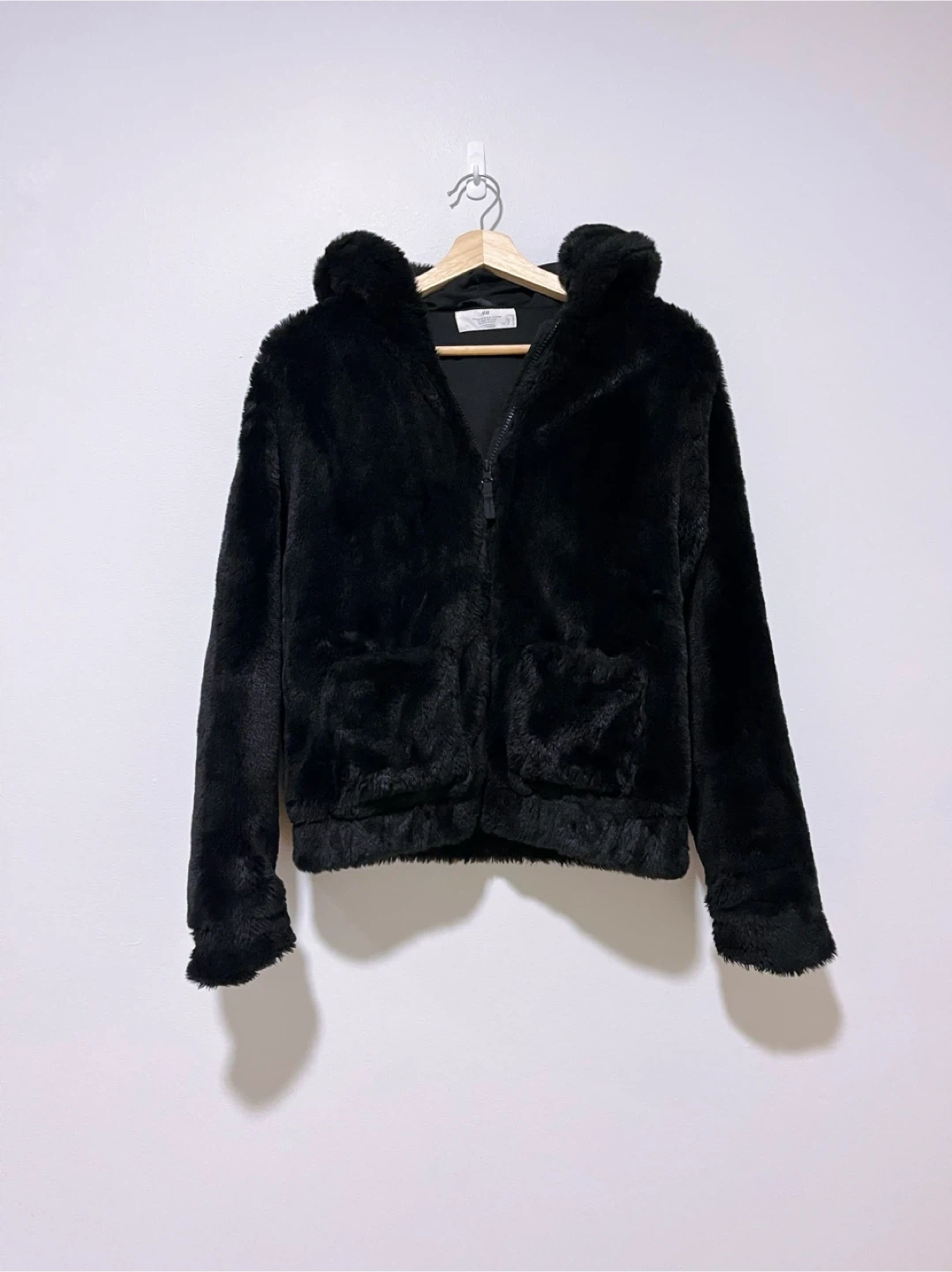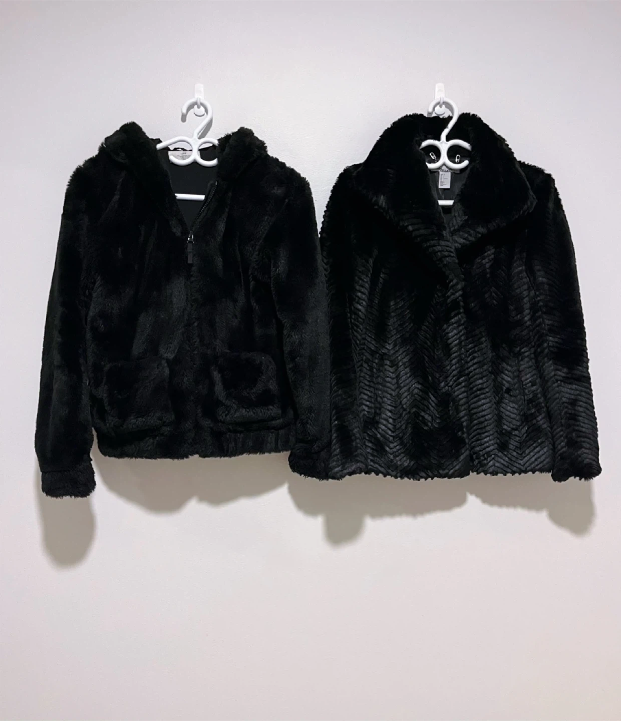 Two H&M Black Faux Fur Jackets-Size S