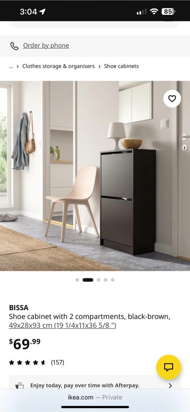 This IKEA BISSA shoe cabinet has two compartments for storage. It measures 49x28x93 cm. Keep your entryway tidy with this cabinet!