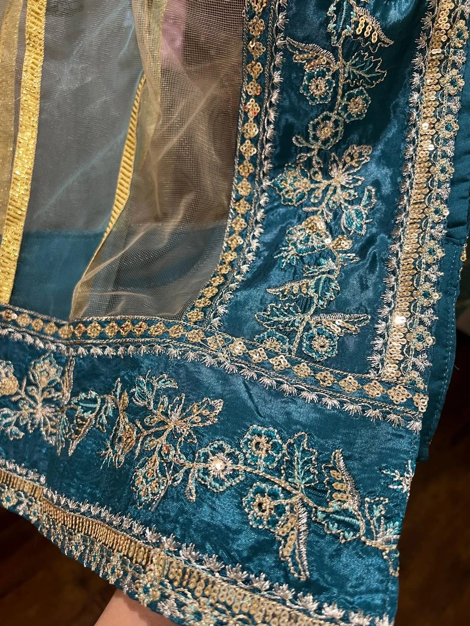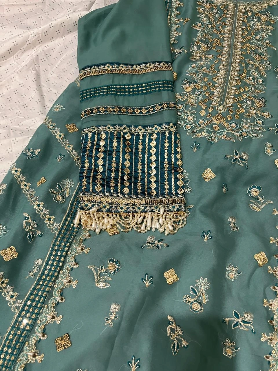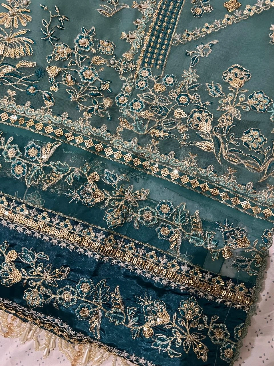 Beautifully designed 3 pcs suit with embroidery ,tilla ,sequences and pearl work