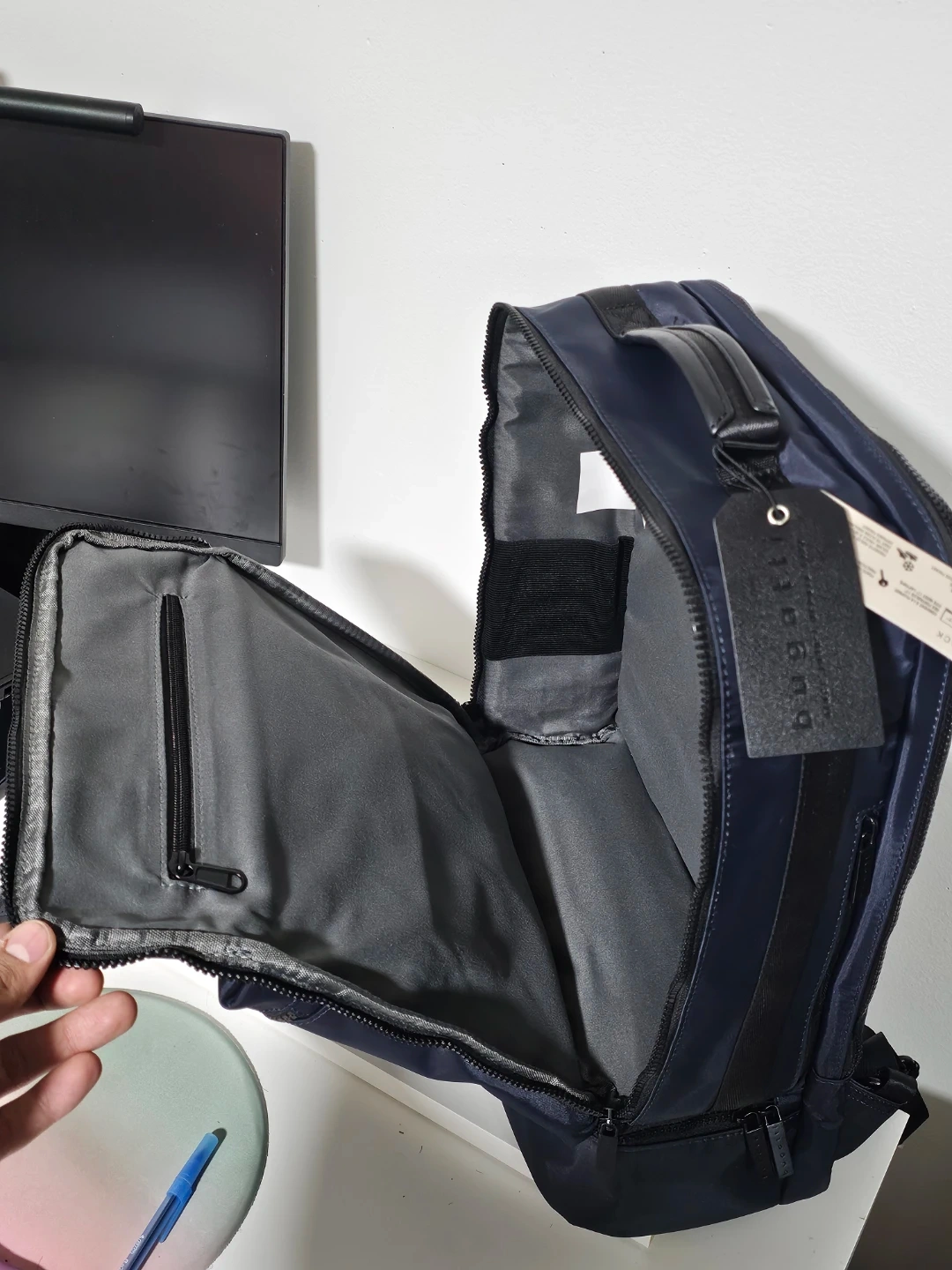 Looking to sell this Bugatti backpack in a nice blue colour! Made of premium materials, vegan leather on the inside, tsa approved.