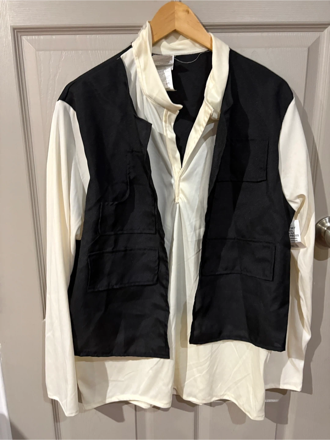Selling a Han Solo costume from Star Wars! It includes a shirt with an attached vest, a pair of pants with boot tops, a belt, and a gun belt with a leg strap. Great for Halloween or cosplay!