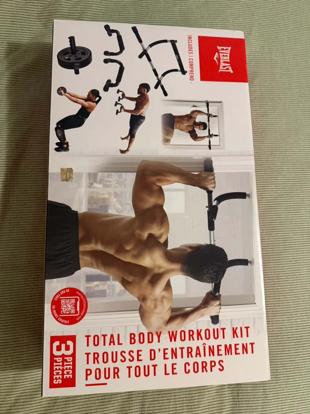 This Everlast 3-piece workout kit includes multiple components for a full-body exercise routine. It's designed for strength training and home workouts. Includes original box.