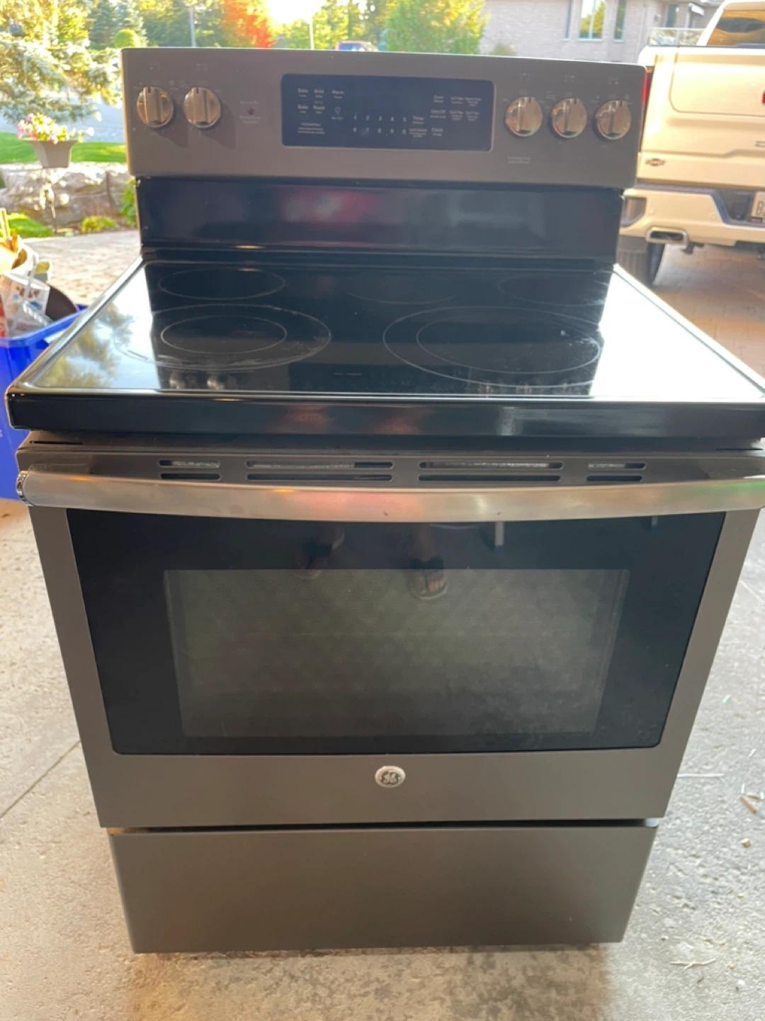 Selling a GE electric range oven. It's in good working condition and ready for a new home! Perfect for baking and cooking all your favourite meals.