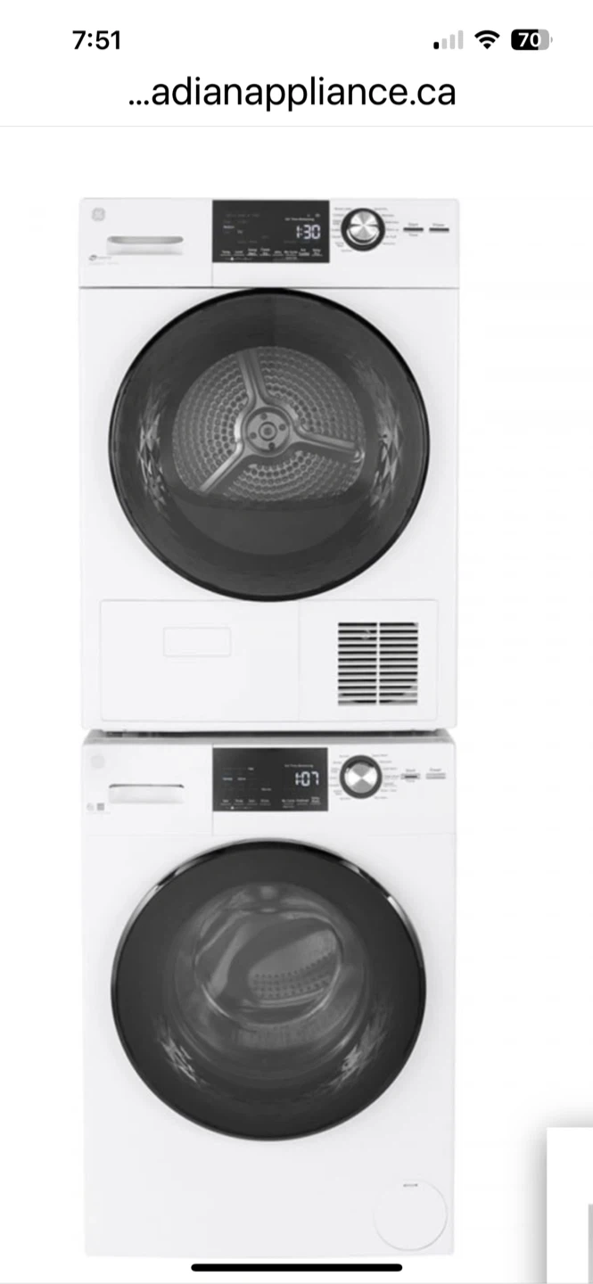 Selling a GE washer and dryer set. They are white in colour and appear to be in new condition. Perfect for your laundry needs!