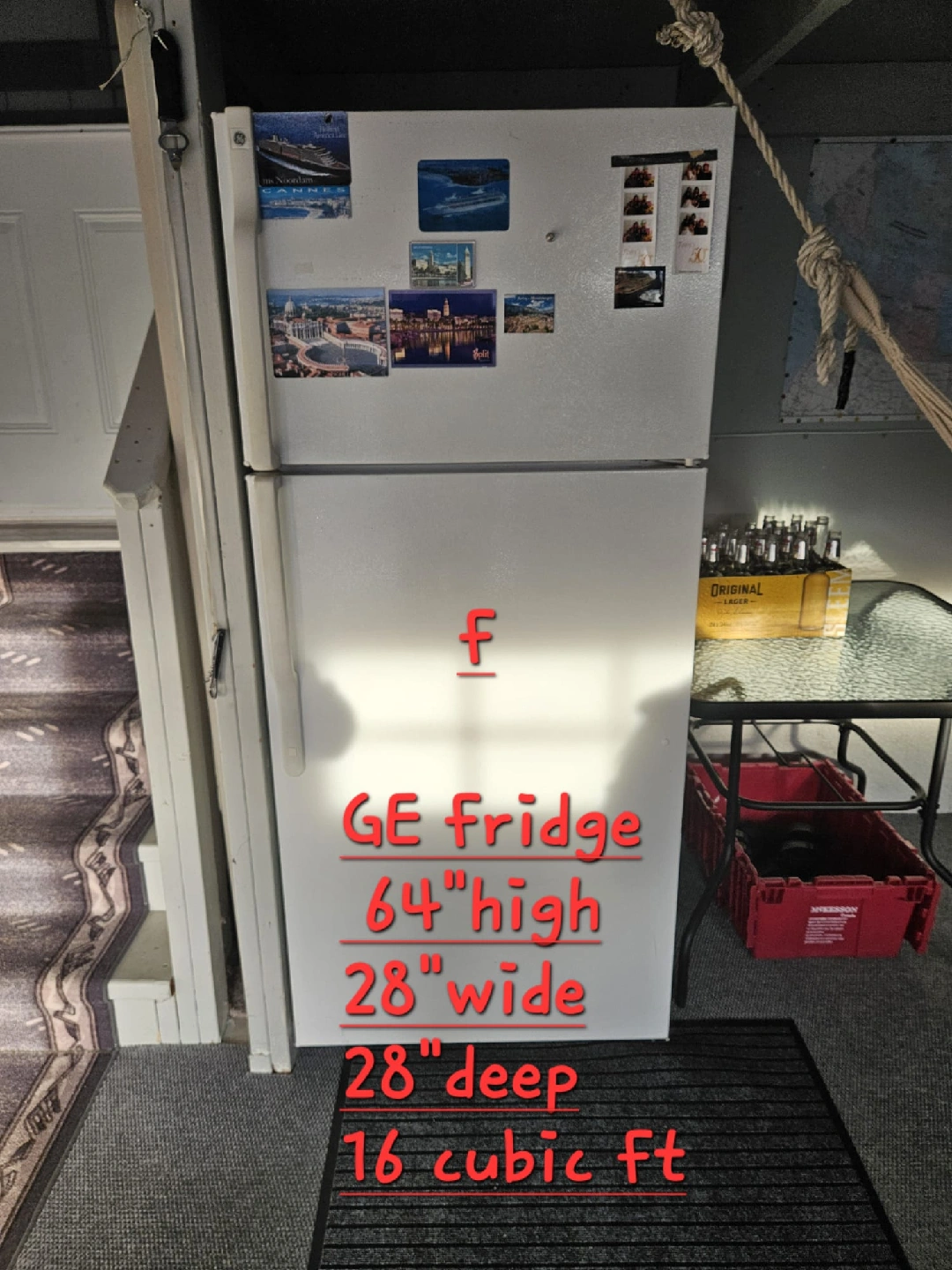 10Selling a GE white fridge in good working condition. It's 64 inches high, 28 inches wide, and 28 inches deep, with a total capacity of 16 cubic feet. Perfect for a small family or apartment!
