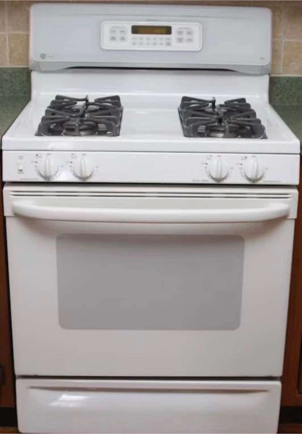 Selling a white GE gas range. It's in good condition and ready for a new home! White GE Profile Spectra - XL44 in clean condition. Requires 110 voltage hydro power to use oven only. While, cooktop burners can be ignited manually and automatically. • 30 x 36 inch Exterior width and length • Self clean • Oven control, Clock and Timer • 4 Gas burners • 4 Burner Caps • 4 Burner heads • 4 Burner knobs • 2 Drip pans • lift- off oven door (easily removed for oven cleaning) • 3 Oven racks • 1 Broiler Pan and Grid • 1 Oven interior light • 1 Storage drawer • 1 Appliance Manual