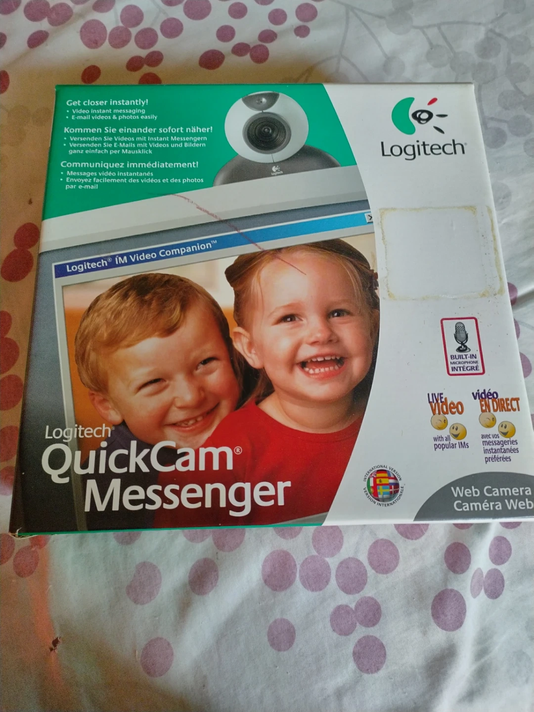 This is a Logitech QuickCam Messenger webcam. It's designed for video instant messaging and sending videos and photos easily. It comes with a built-in microphone for clear audio during calls. Never used - box still sealed.