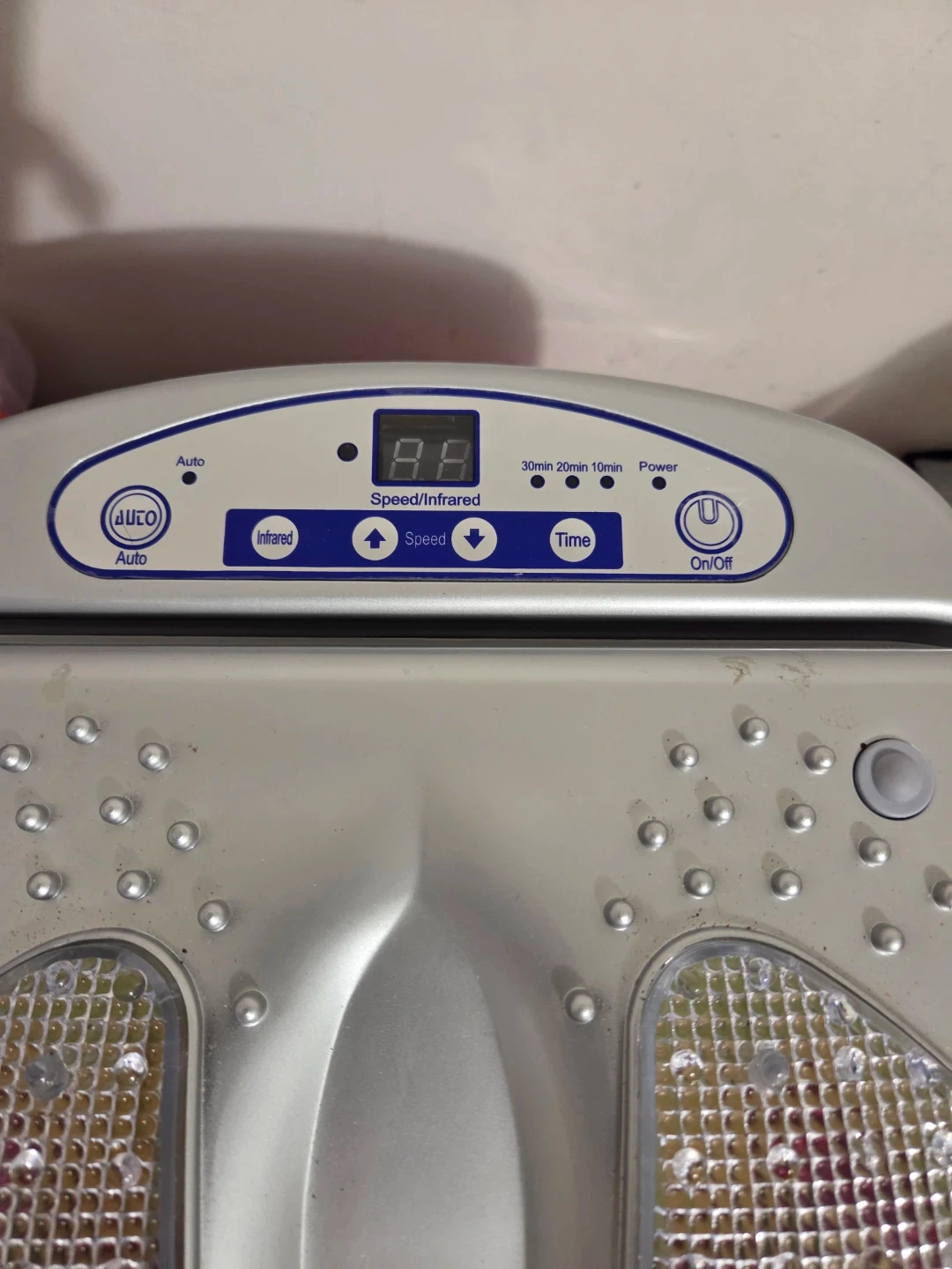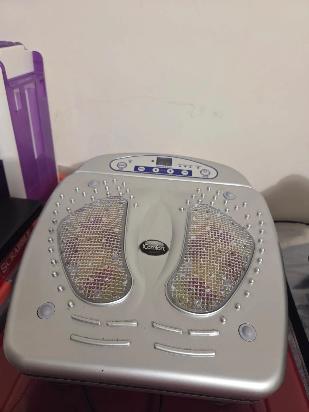 iComfort foot massager with infrared and speed settings. Includes timer functions up to 30 minutes. Provides relief for tired feet.