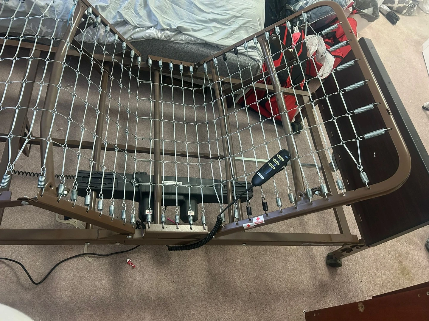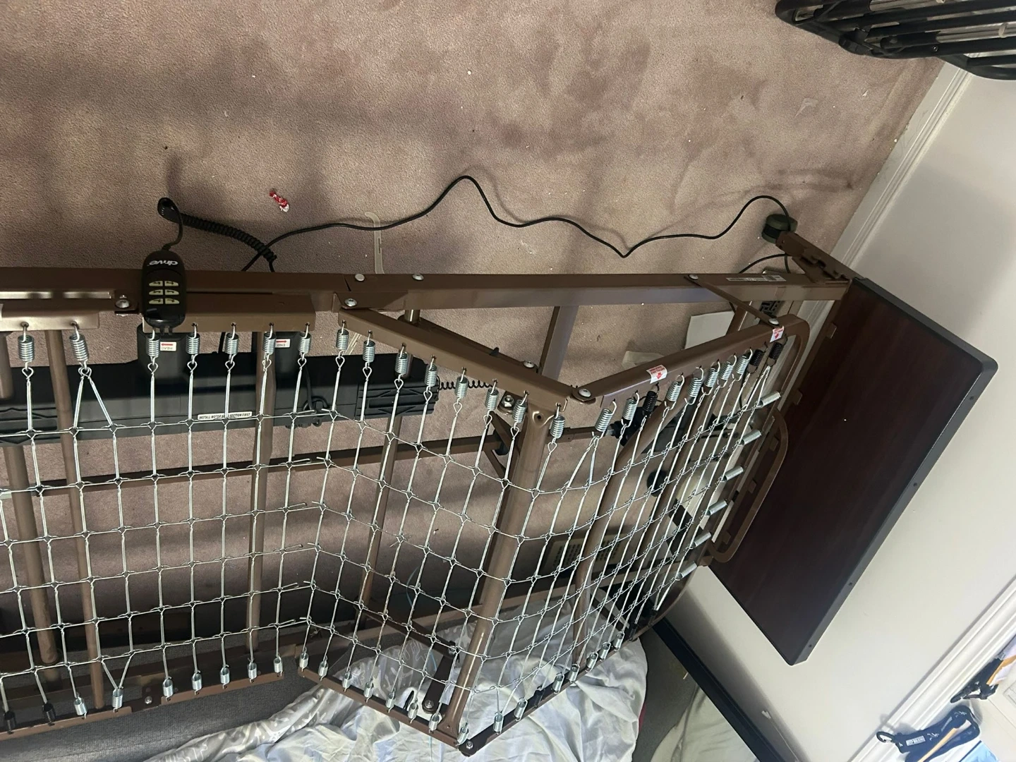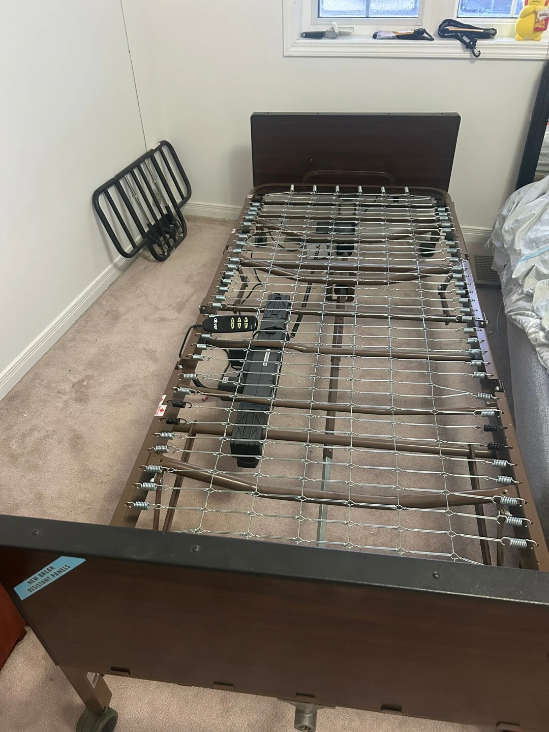 Metal with remote control and with removable sides and you can adjust the highest and move up and down the head Very good condition almost new used for one day then got stored original price 3000$ .need to be gone as soon as possible very urgent 500$ or best offer.